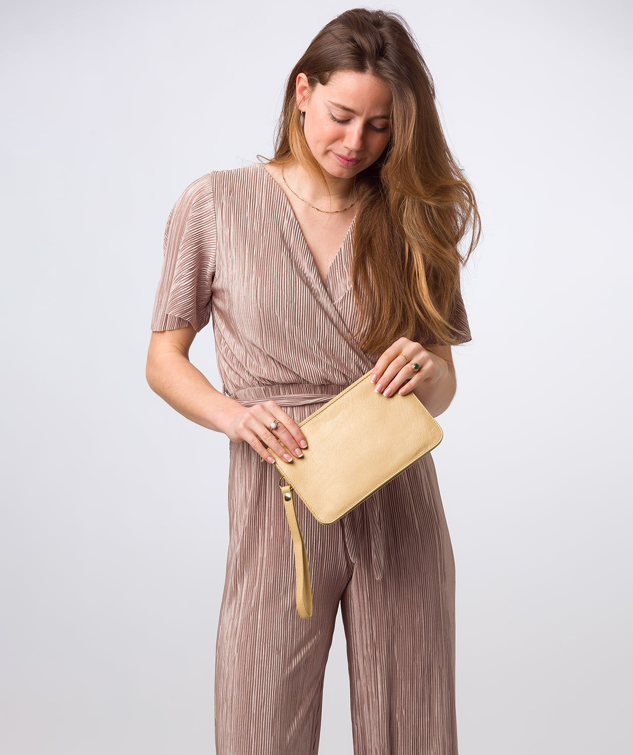'Addison' Metallic Gold Nappa Leather Clutch Bag