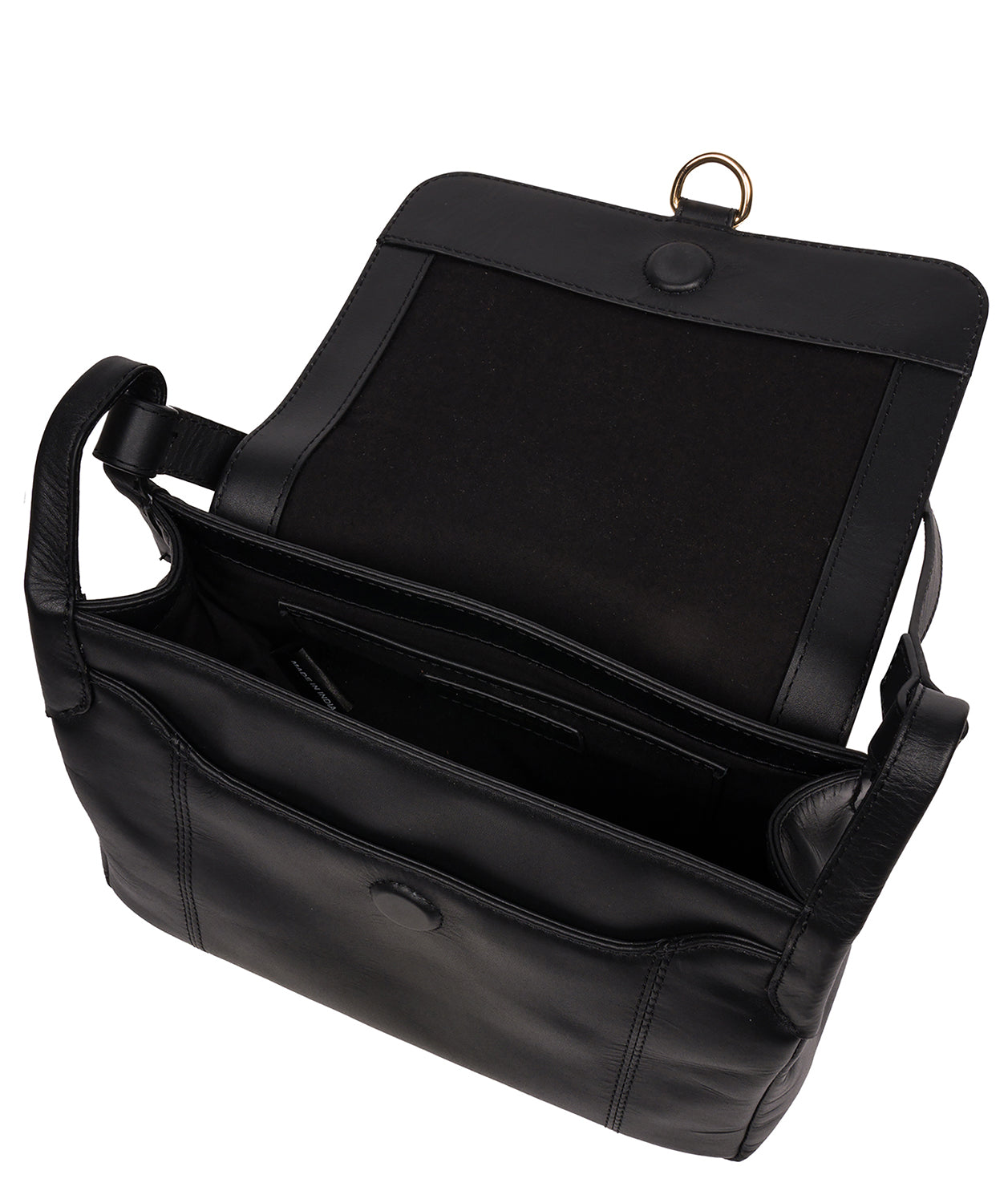 - The spacious main compartment is lined with 100% cotton and secured with a fold-over top and magnetic press-stud