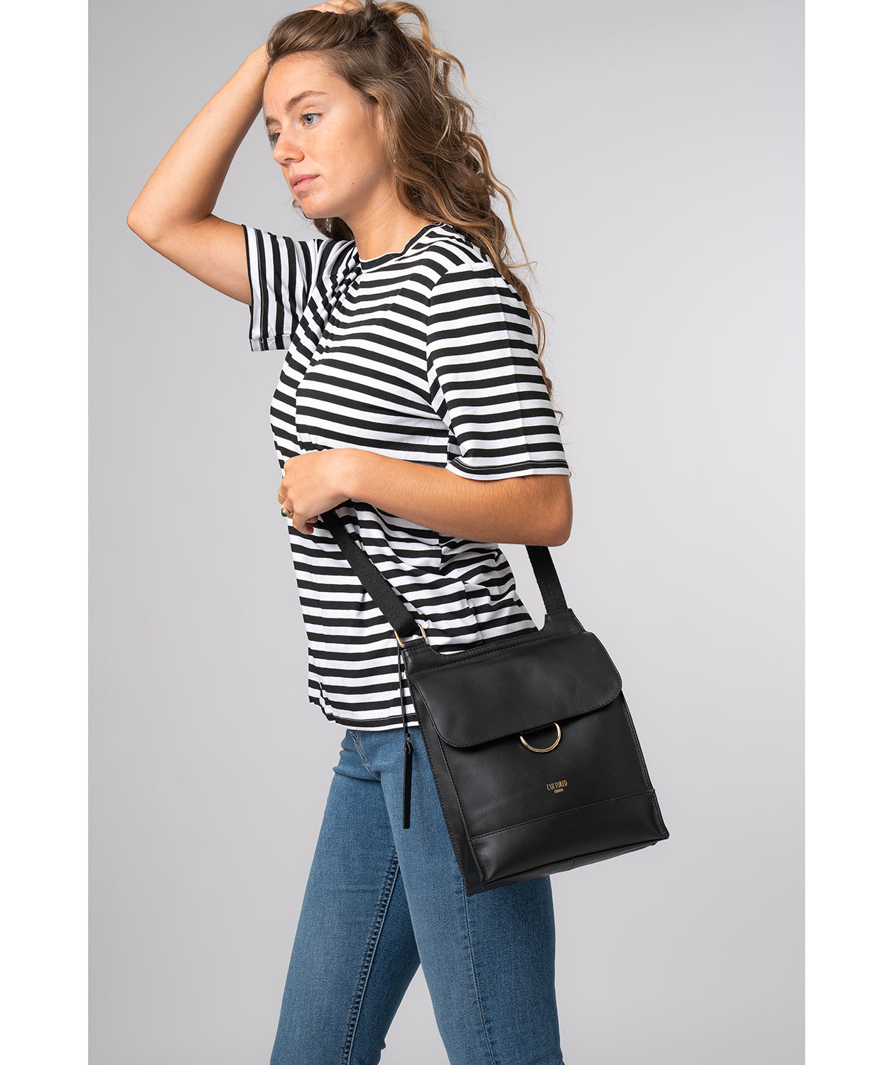 - The main compartment offers ample storage for everyday essentials, complemented by two slip pockets to keep your bag organised