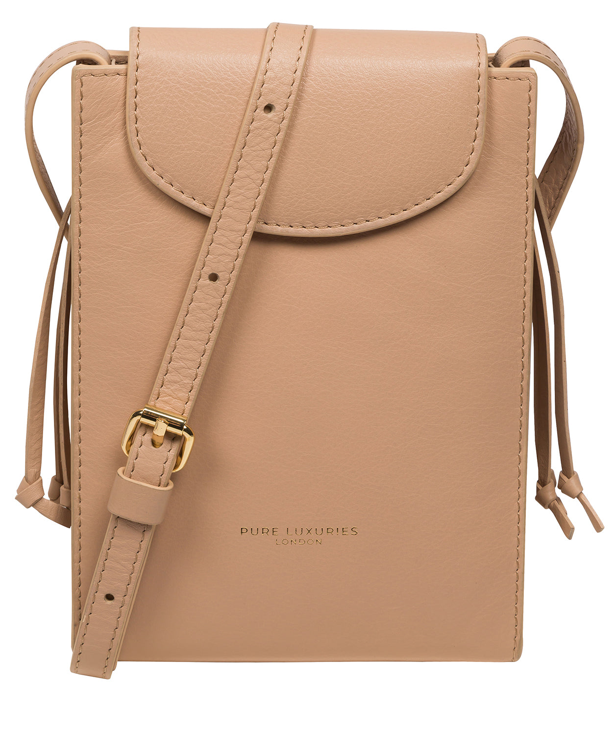 'Kiana' Latte Nappa Leather Cross Body Phone Bag