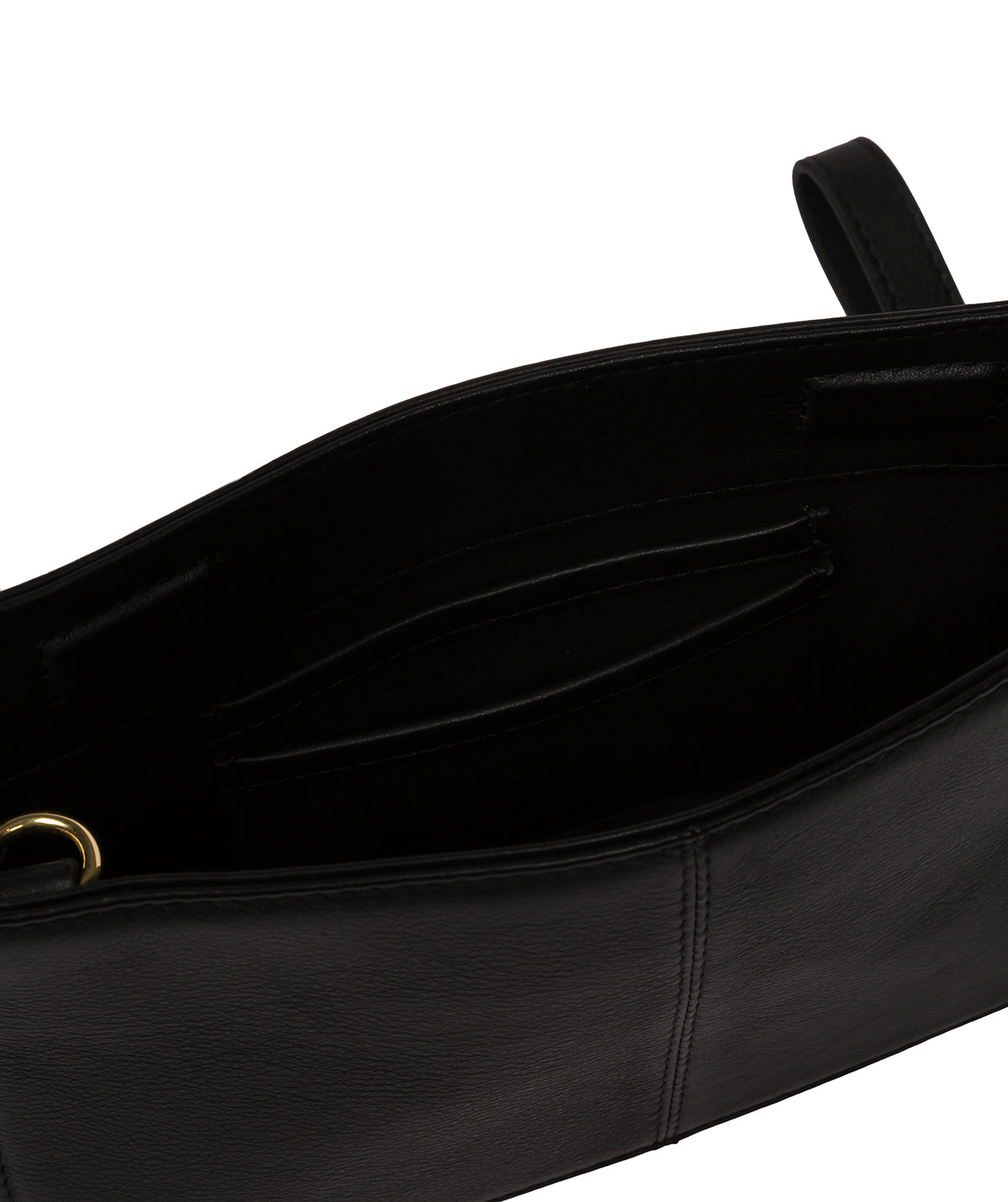 - Concealed magnetic closures secure the open-top and it features a 100% cotton-lined interior, including two card slots