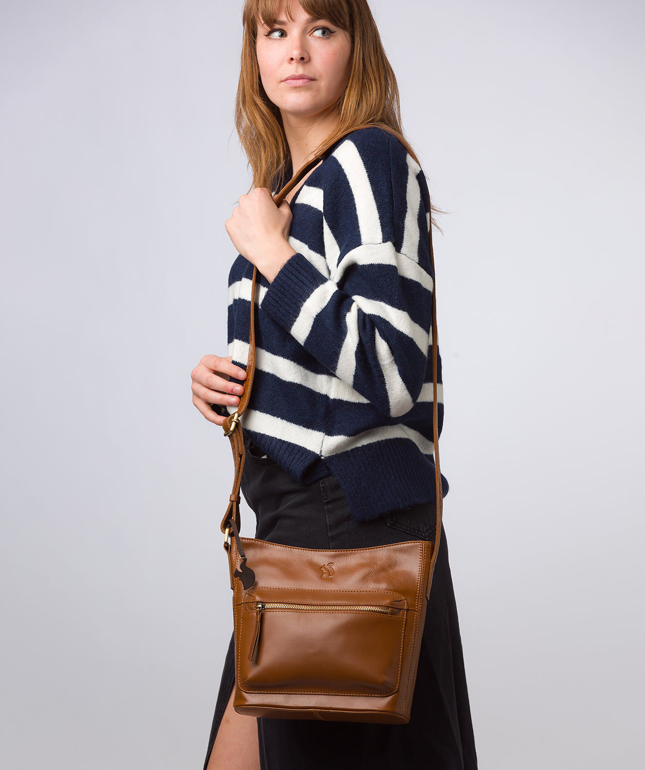 - Rustic yet beautiful brass fittings and zips adorn the bag alongside a leather and canvas adjustable strap with a maximum drop length of 70cm