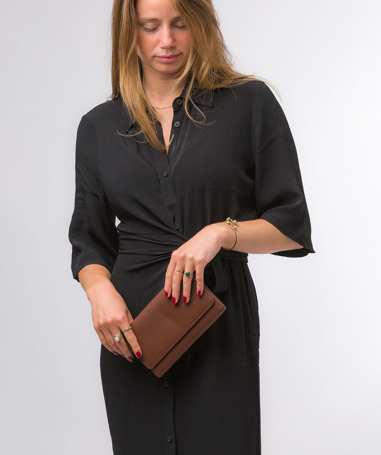'Saffron' Dark Tan Nappa Leather Cross Body Clutch Bag