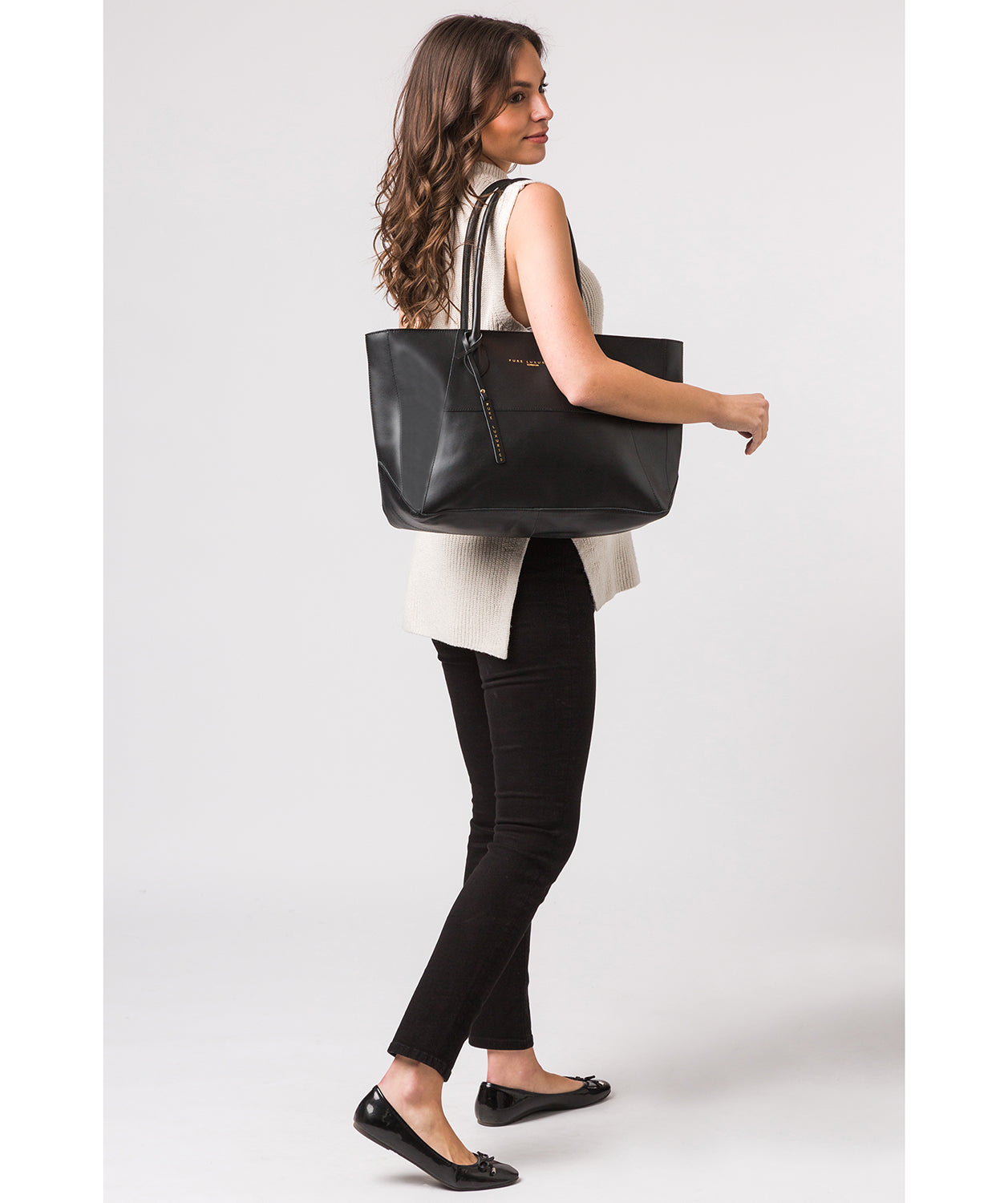 'Storrington' Jet Black Vegetable-Tanned Leather Tote Bag