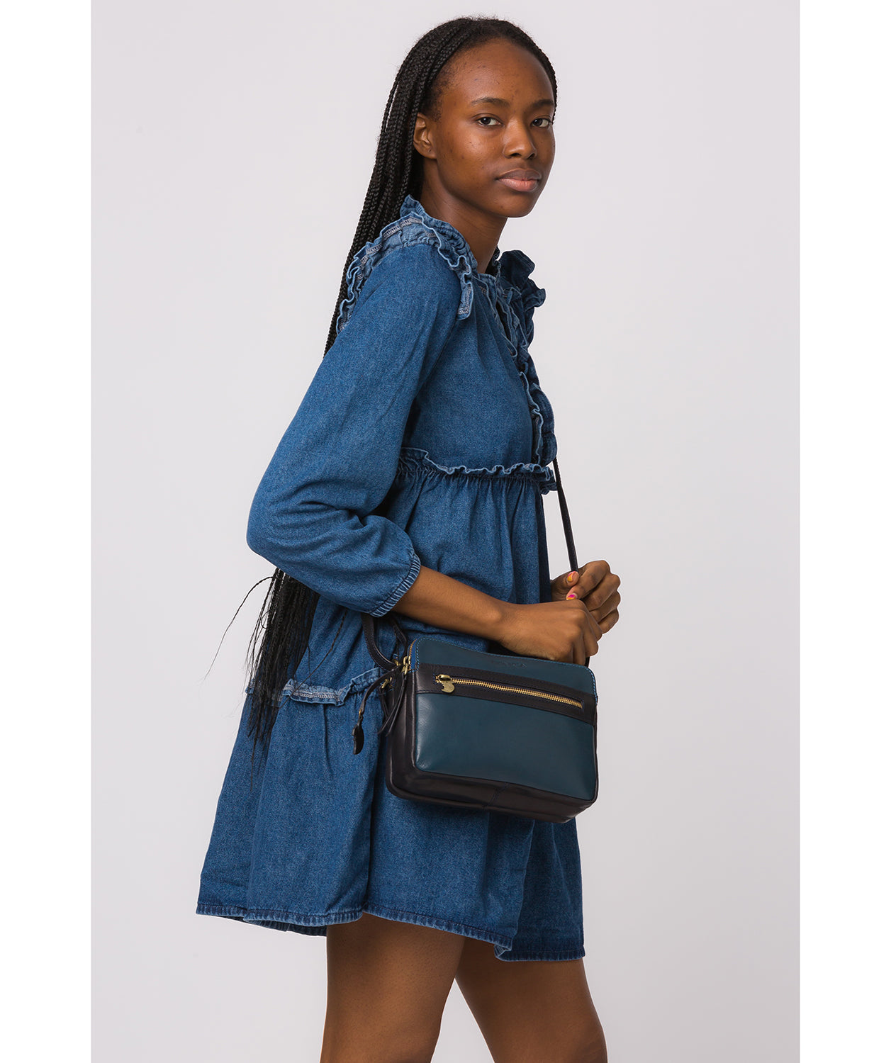 'Nikita' Navy & Dark Tan Leather Cross Body Bag Sale price£44.00 Regular price£62.00