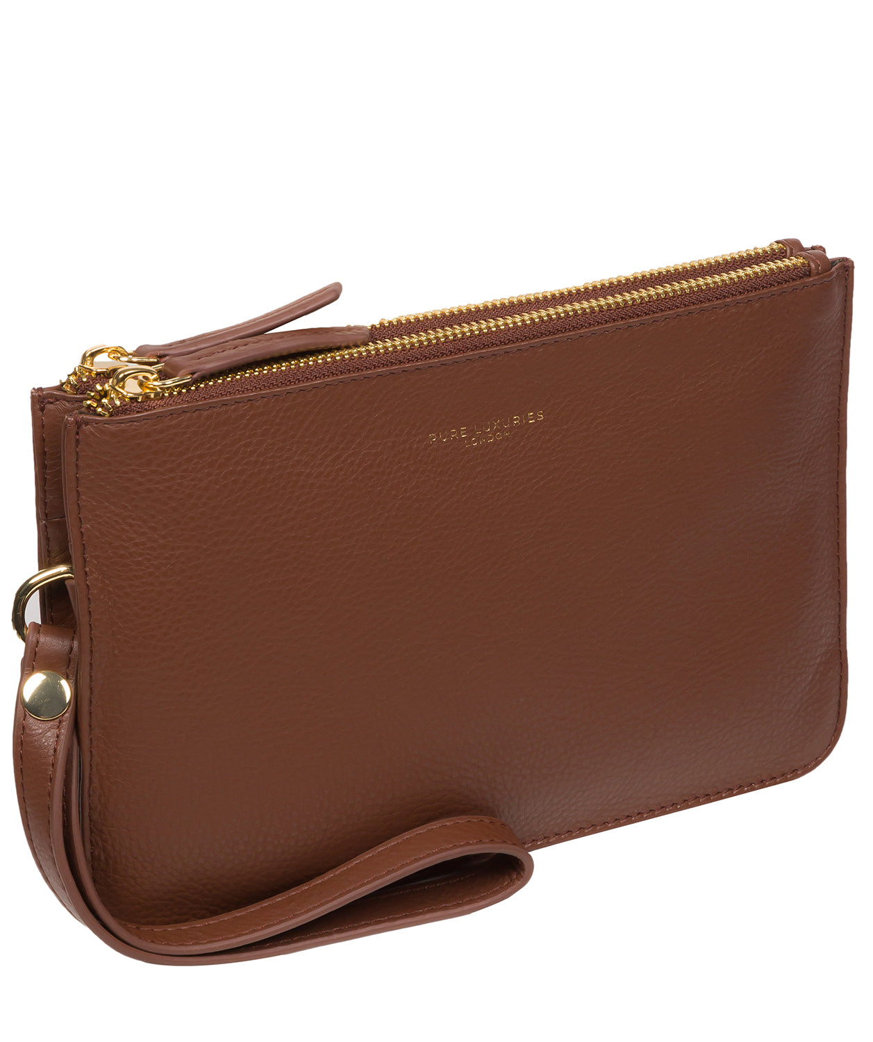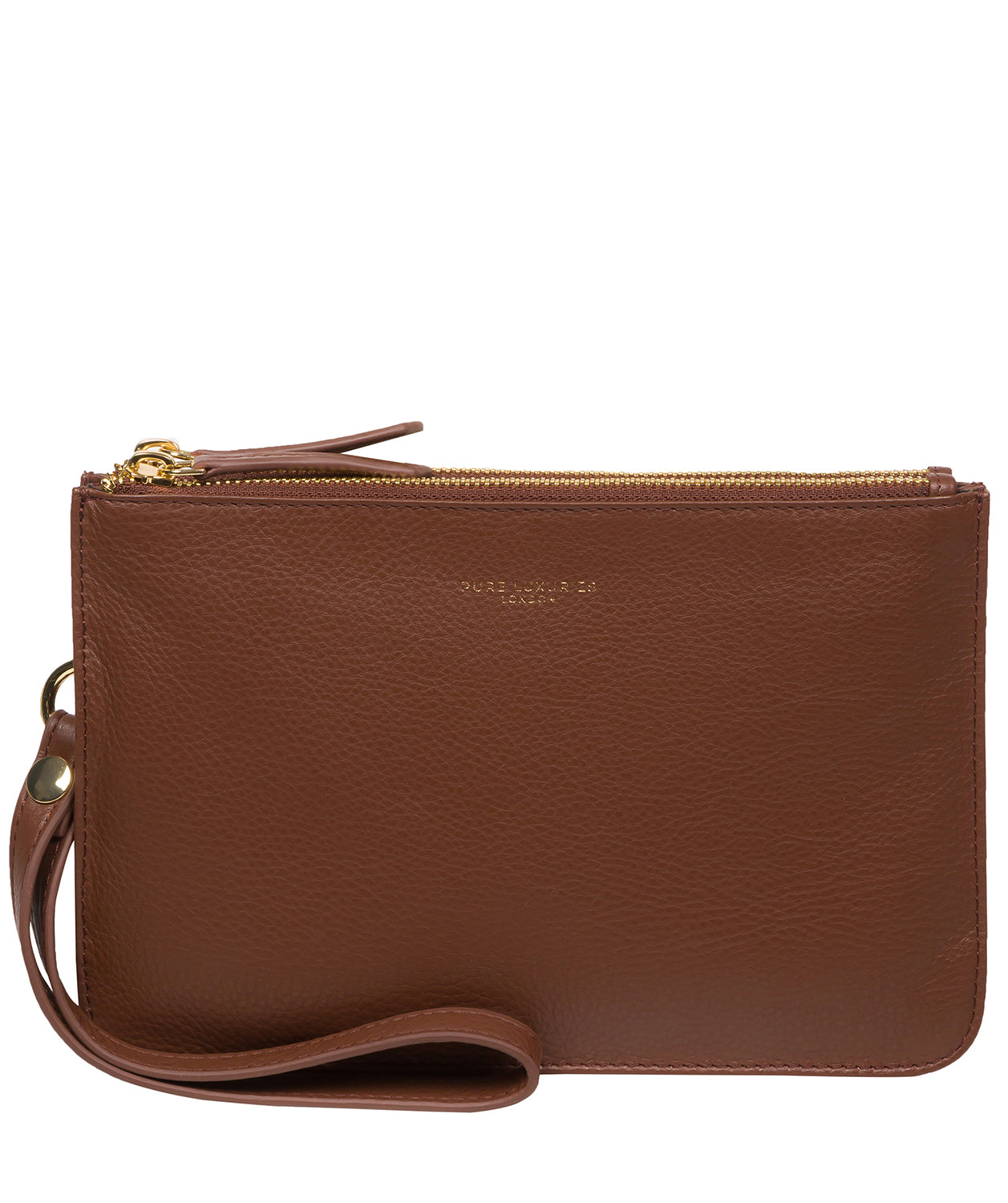 'Addison' Dark Tan Nappa Leather Clutch Bag
