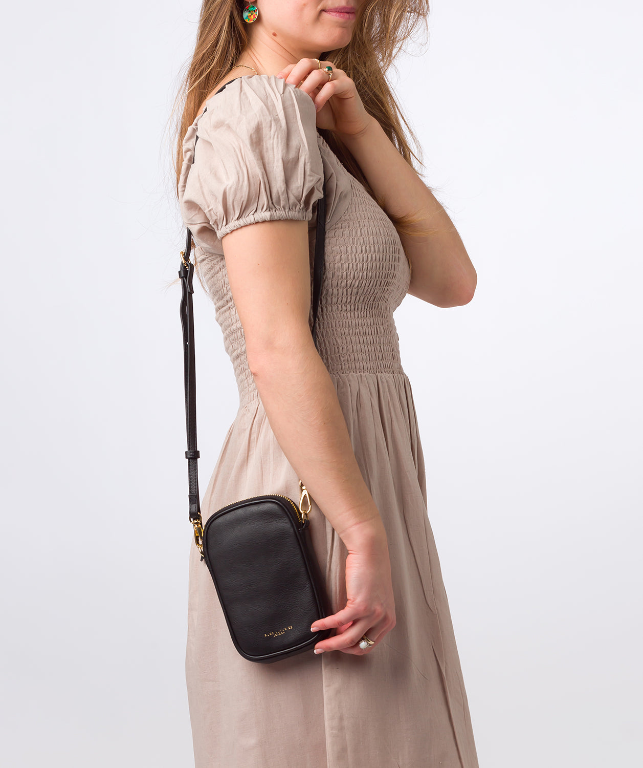 'Alaina' Black Nappa Leather Cross Body Phone Bag