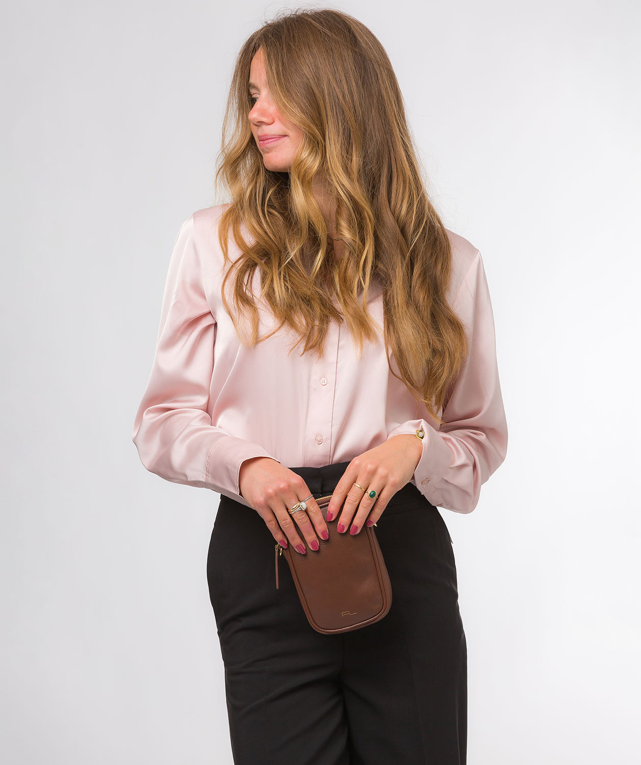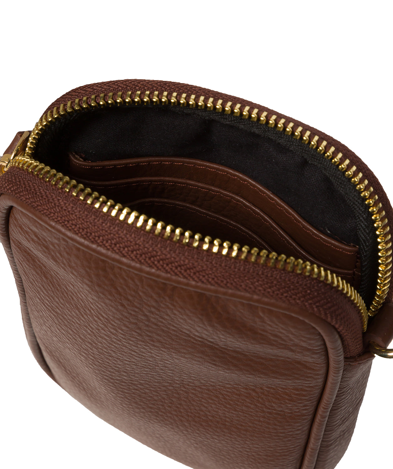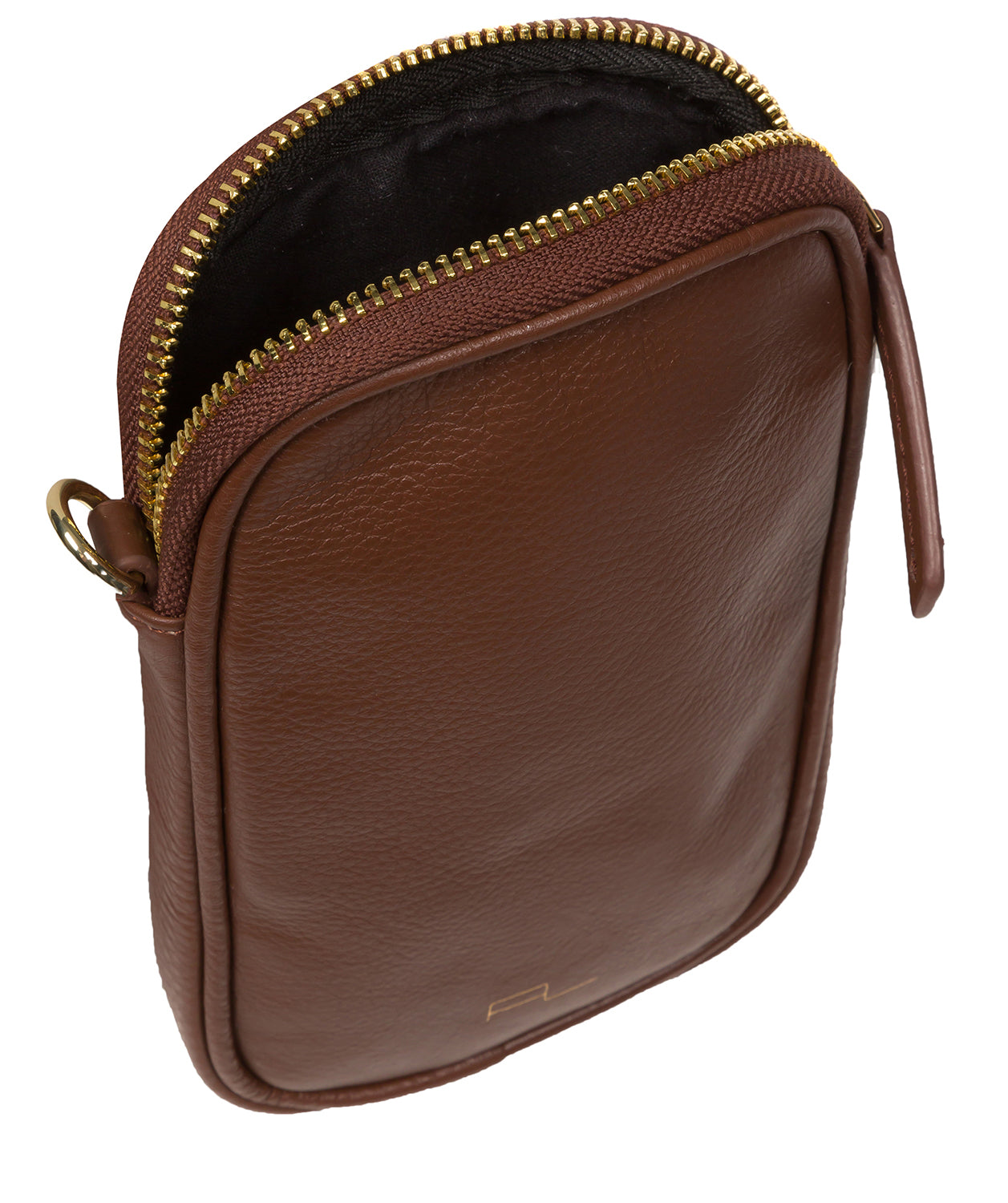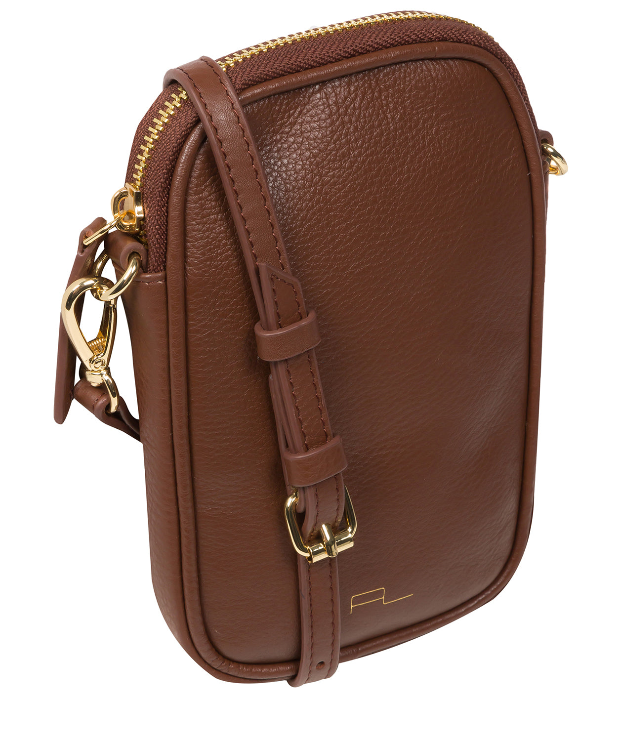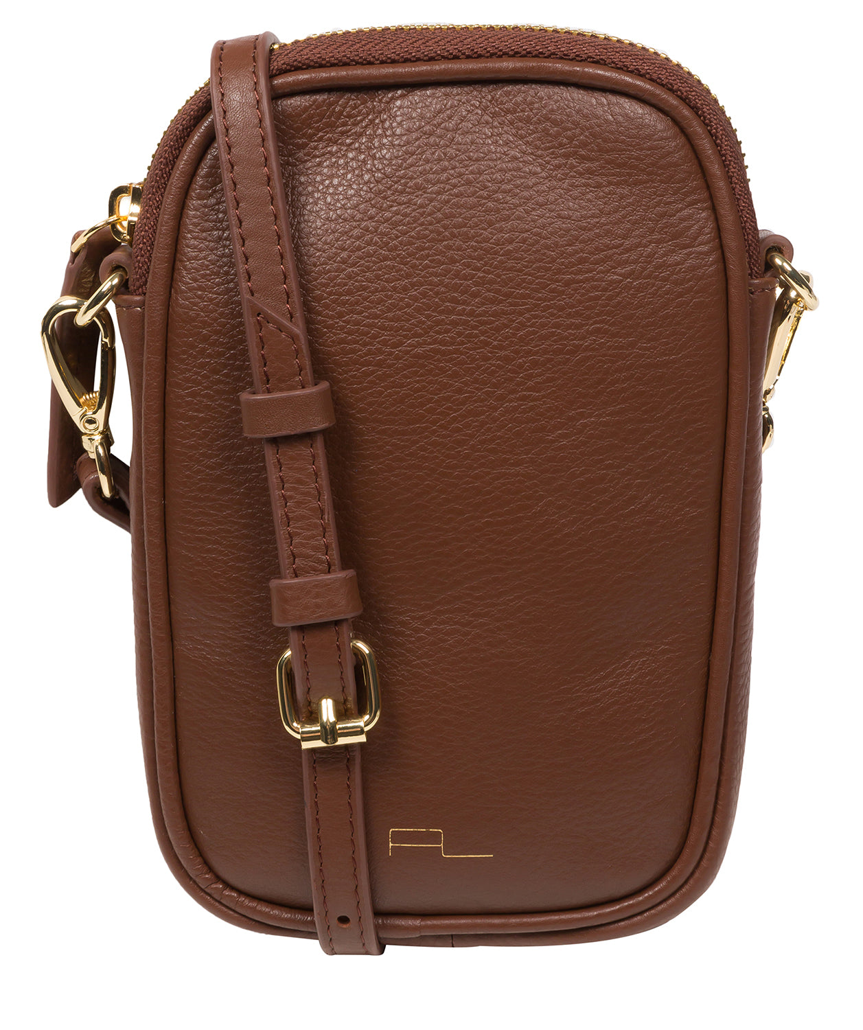 'Alaina' Dark Tan Nappa Leather Cross Body Phone Bag