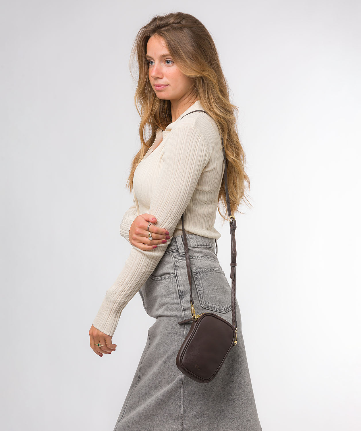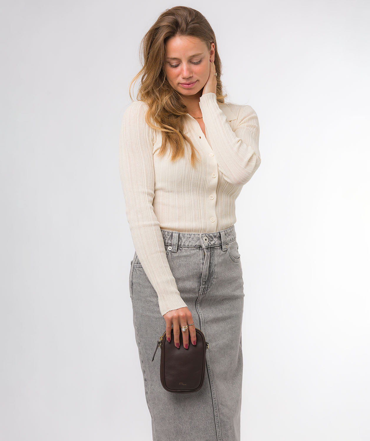 'Alaina' Hot Fudge Nappa Leather Cross Body Phone Bag