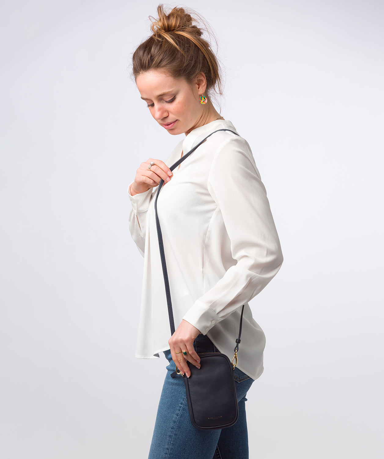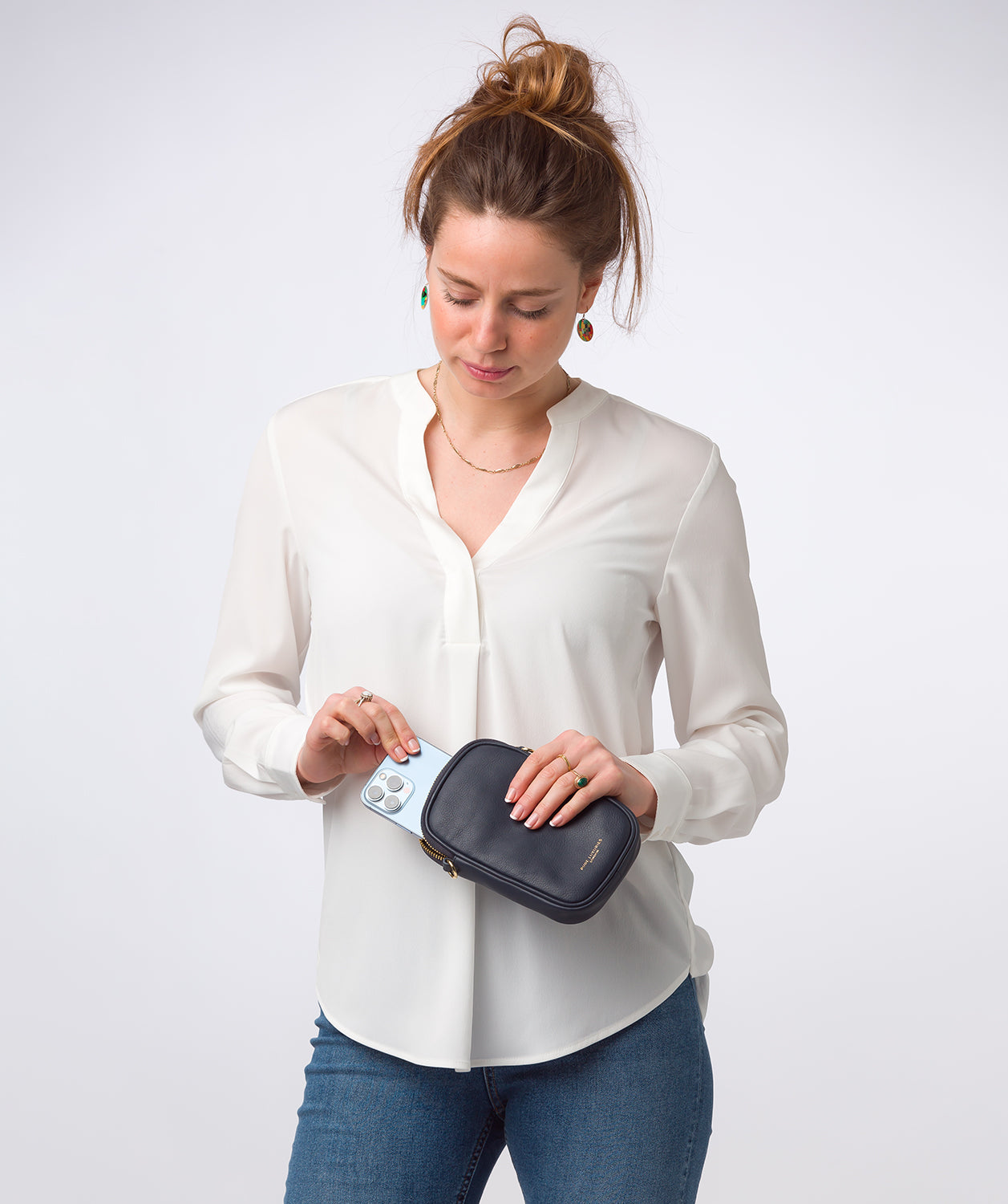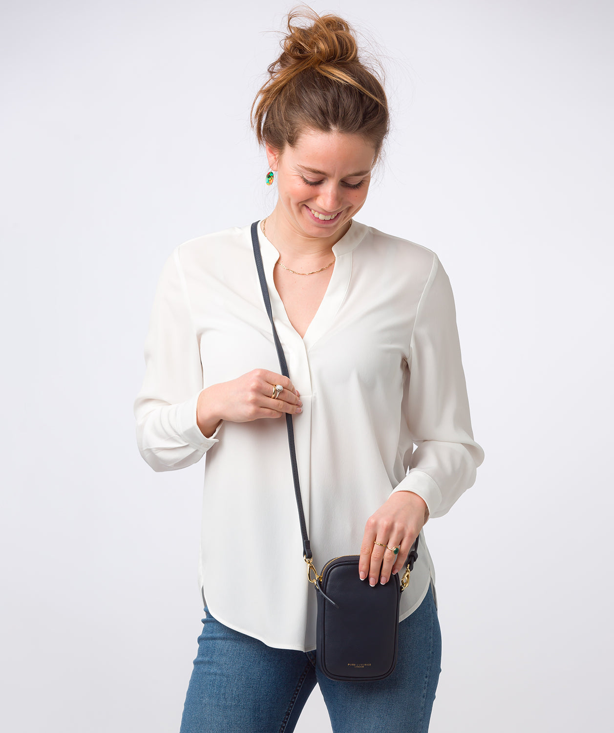 - The compact and beautiful phone bag is ideal for packing in hand luggage or your tote to protect it and is complemented by stylish gold-coloured metal fittings and zips