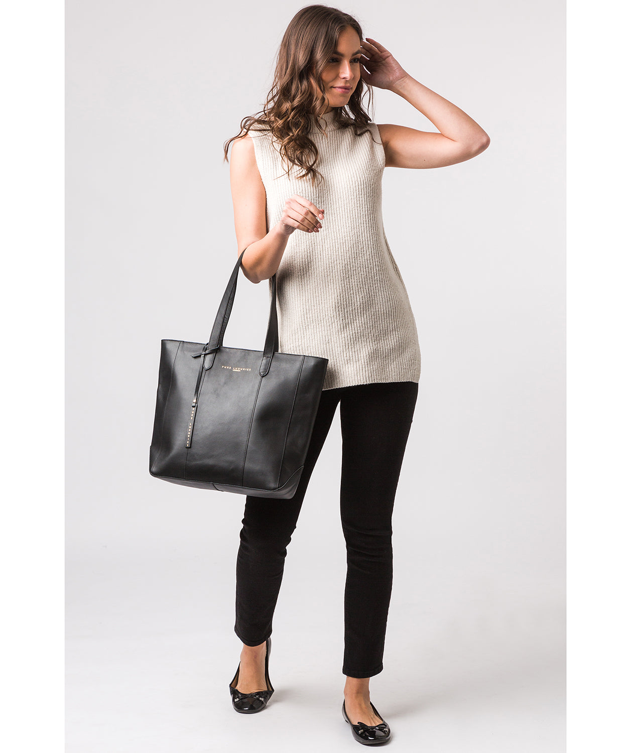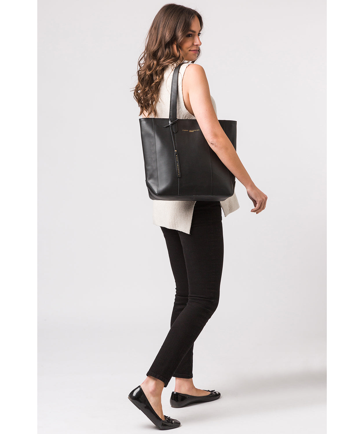 'Amberley' Jet Black Vegetable-Tanned Leather Tote Bag