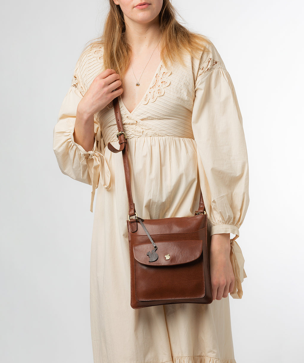 'Lauryn' Conker Brown Leather Cross Body Bag