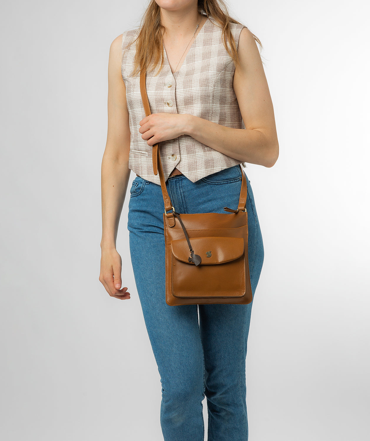 'Lauryn' Dark Tan Leather Cross Body Bag