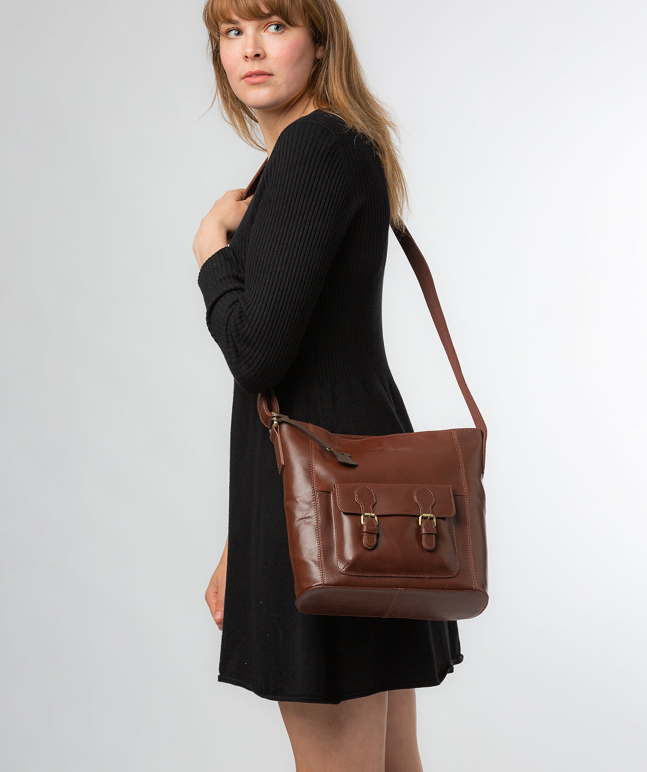 - Features a pocket to the front of the bag fastened by mock-buckle magnetic clasps and a pouch on the rear of the bag, ideal for on-the-go storage