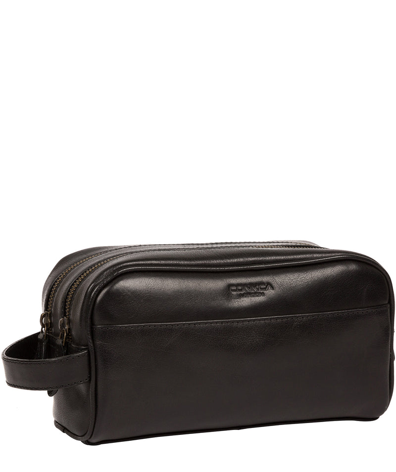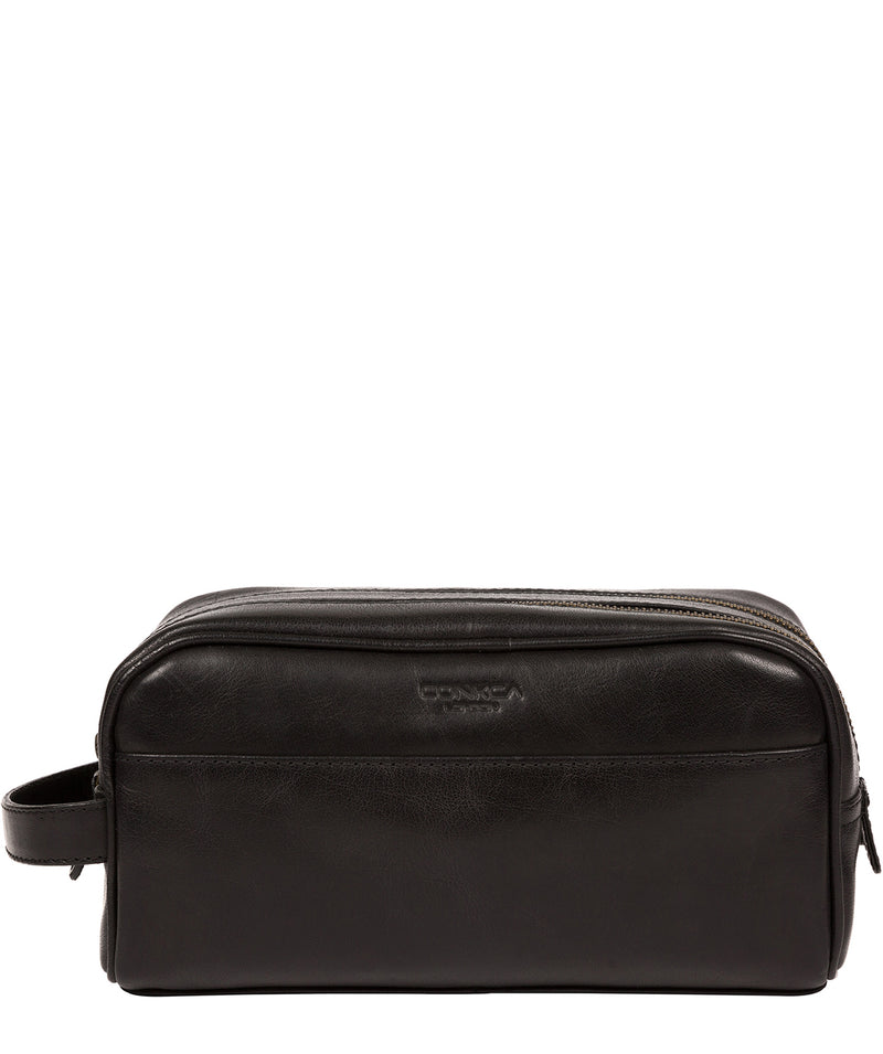 'Alberto' Black Leather Washbag