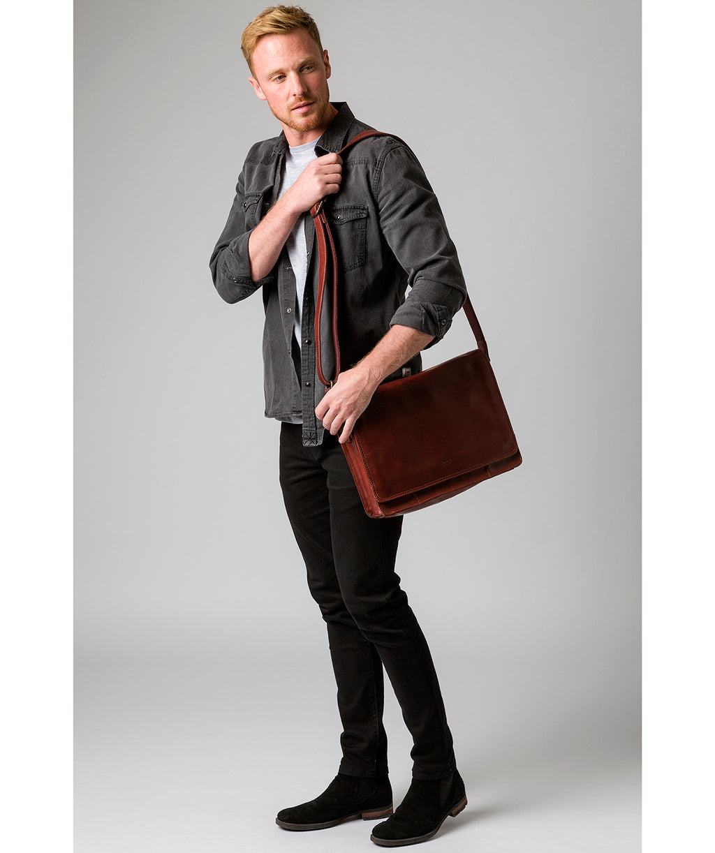 - Includes three internal pouches under the fold over top ideal for keys, a purse and a smartphone, one of which is a laptop sleeve