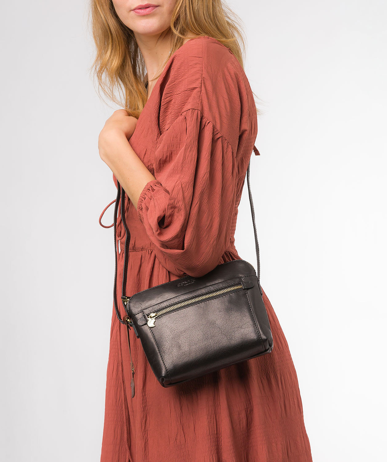 'Frida' Black Leather Cross Body Bag