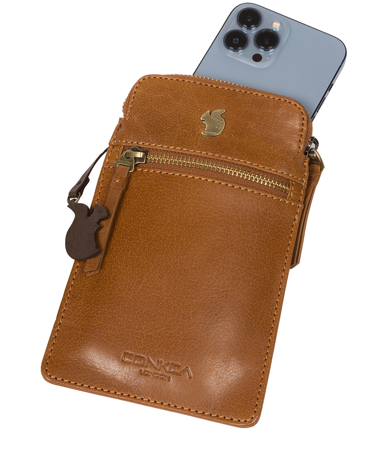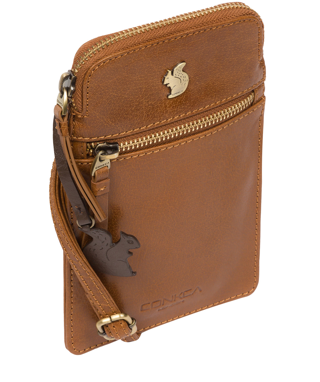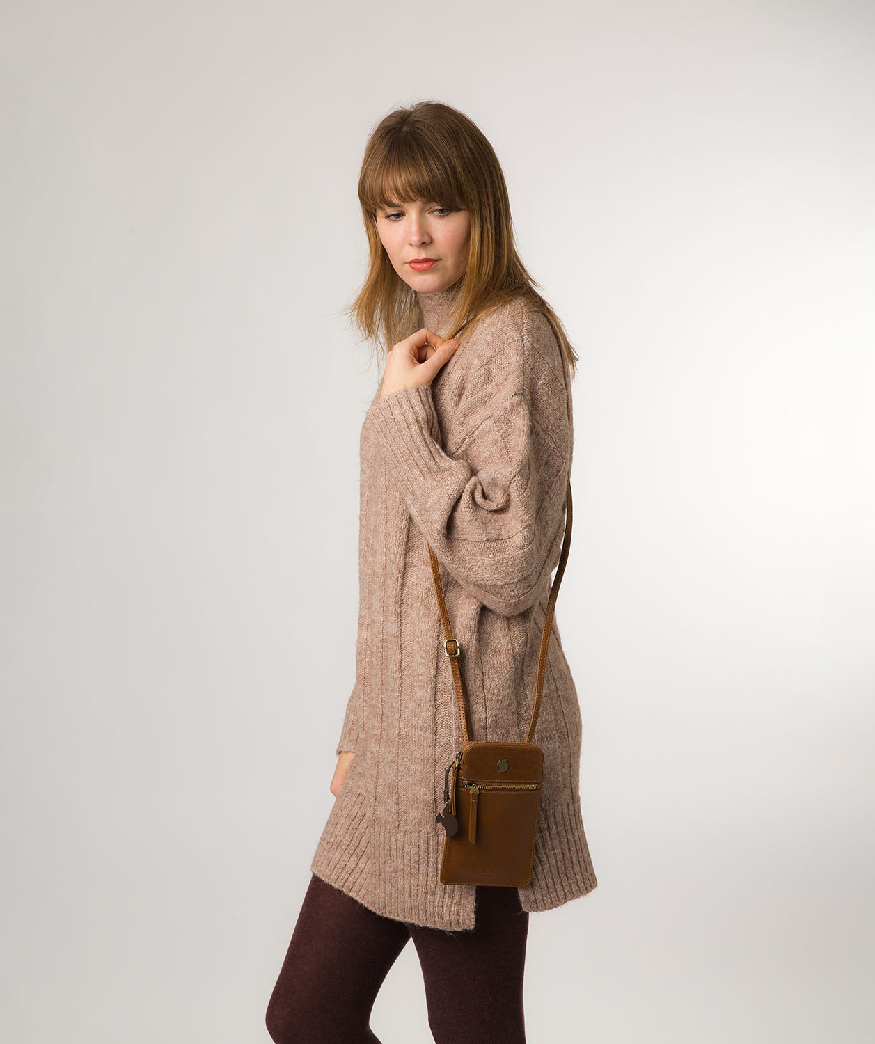 'Bambino' Dark Tan Leather Cross Body Phone Bag