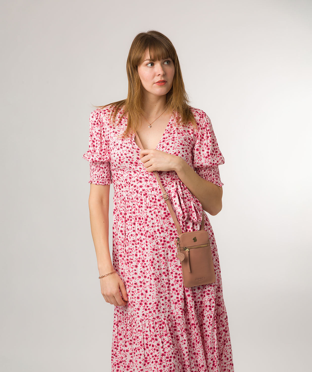 'Bambino' Subtle Pink Leather Cross Body Phone Bag