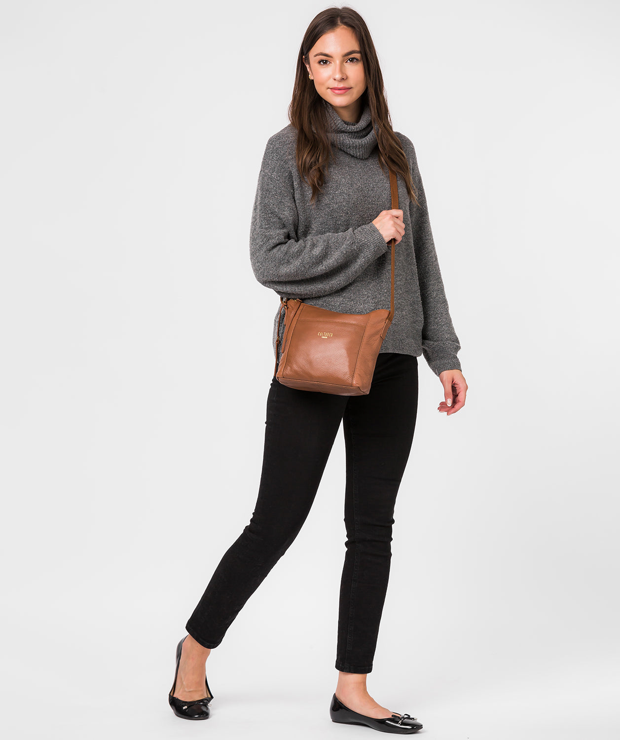 'Belgravia' Dark Tan Leather Cross Body Bag