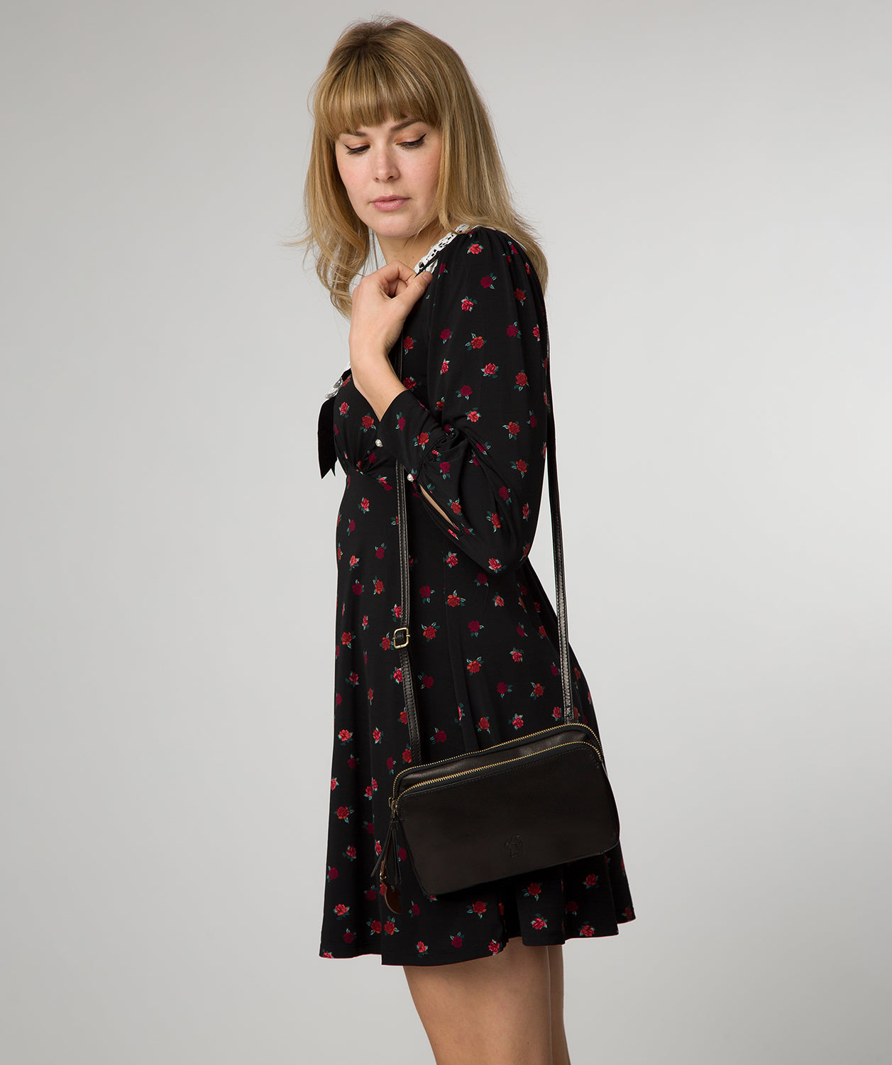 - A zipped pocket on the front of the bag provides on-the-go storage and the off set design gives the bag a unique silhouette