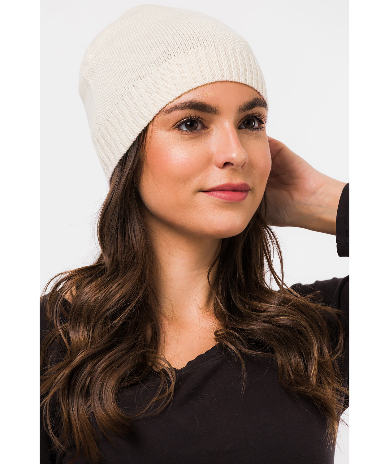 'Bowness' Cream Cashmere & Merino Wool Beanie Hat
