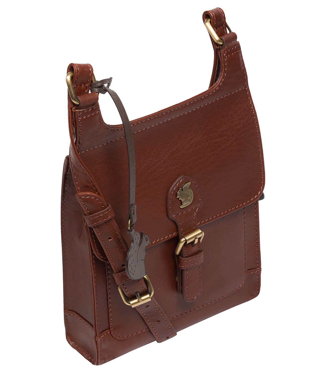- Adorned with an adjustable slim leather strap with a maximum drop length of 65cm and features eye-catching rustic brass metal fittings and zips