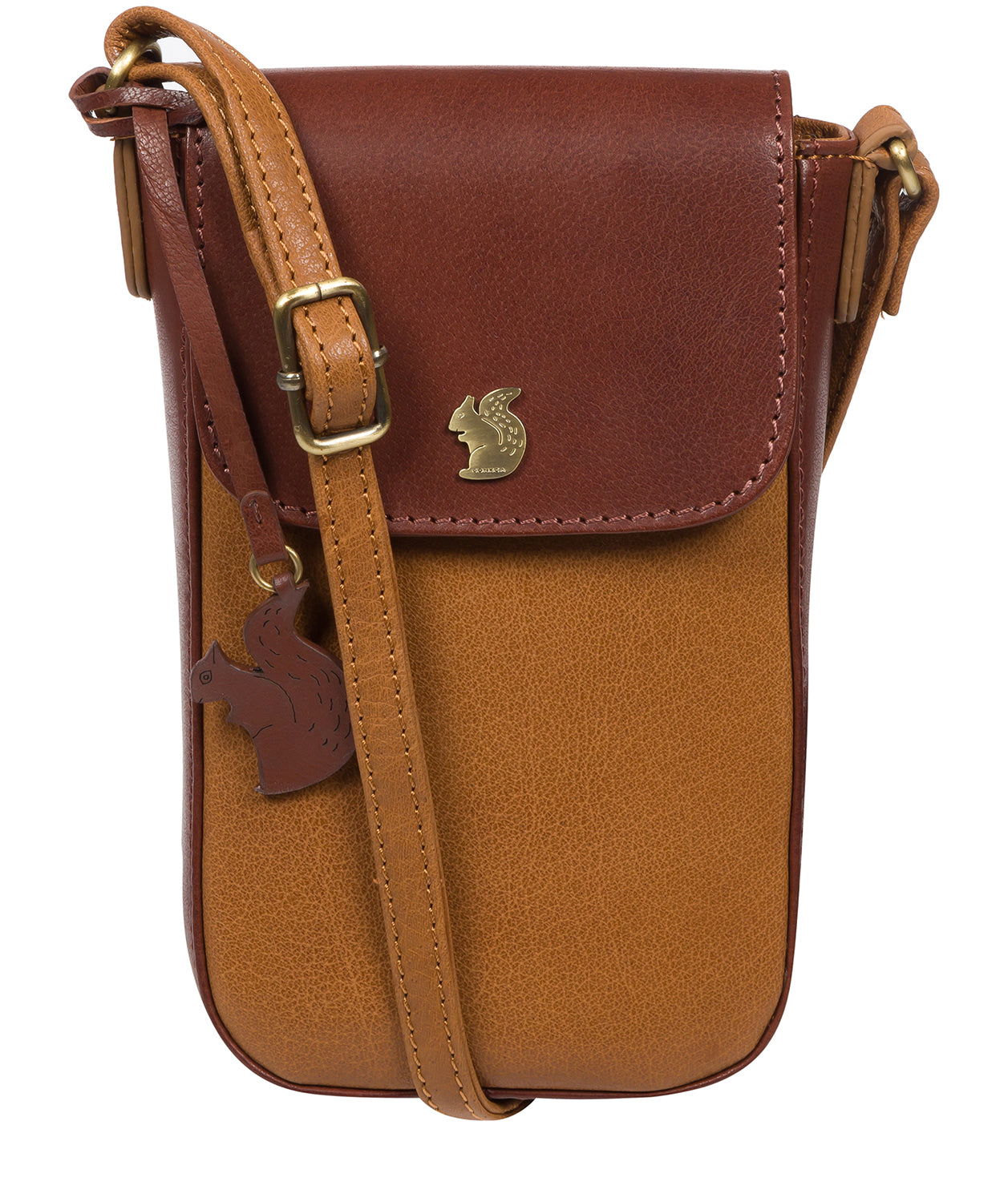 'Buzz' Dark Tan & Conker Brown Leather Cross Body Phone Bag