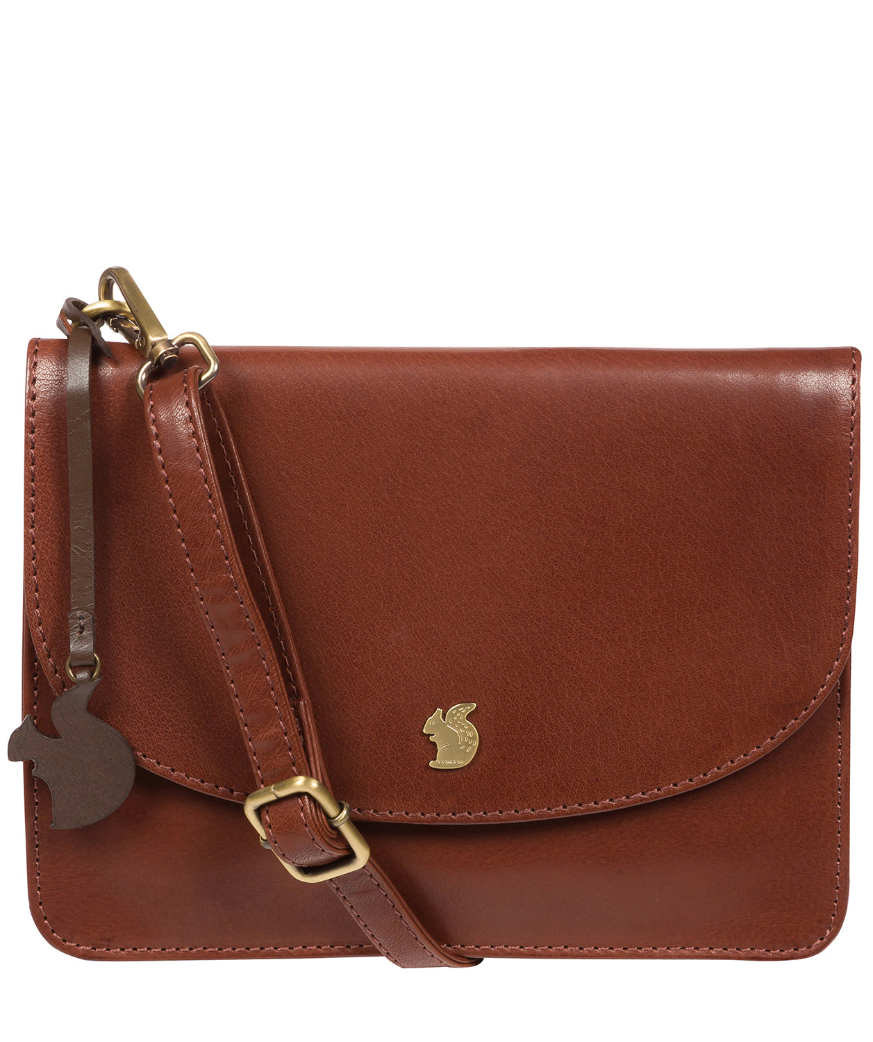 'Cara' Conker Brown Leather Cross Body Clutch Bag