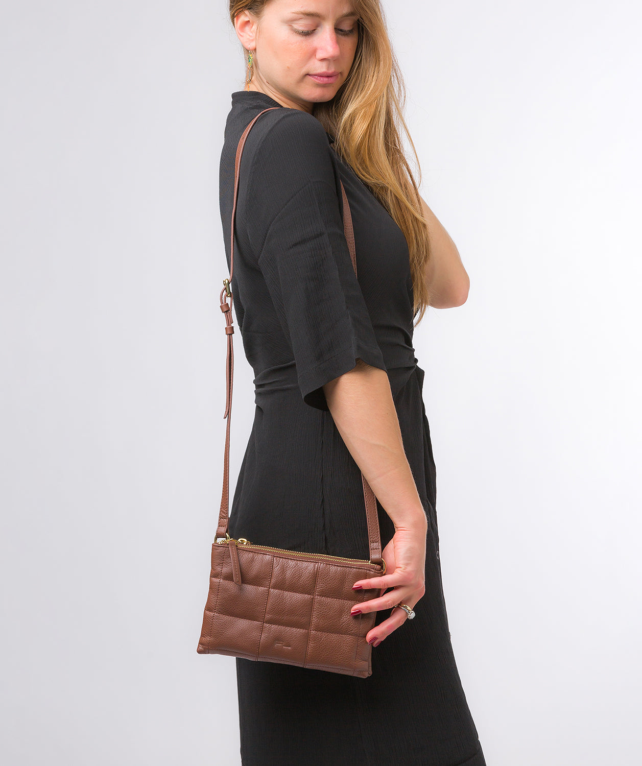 'Carmen' Dark Tan Nappa Leather Cross Body Bag