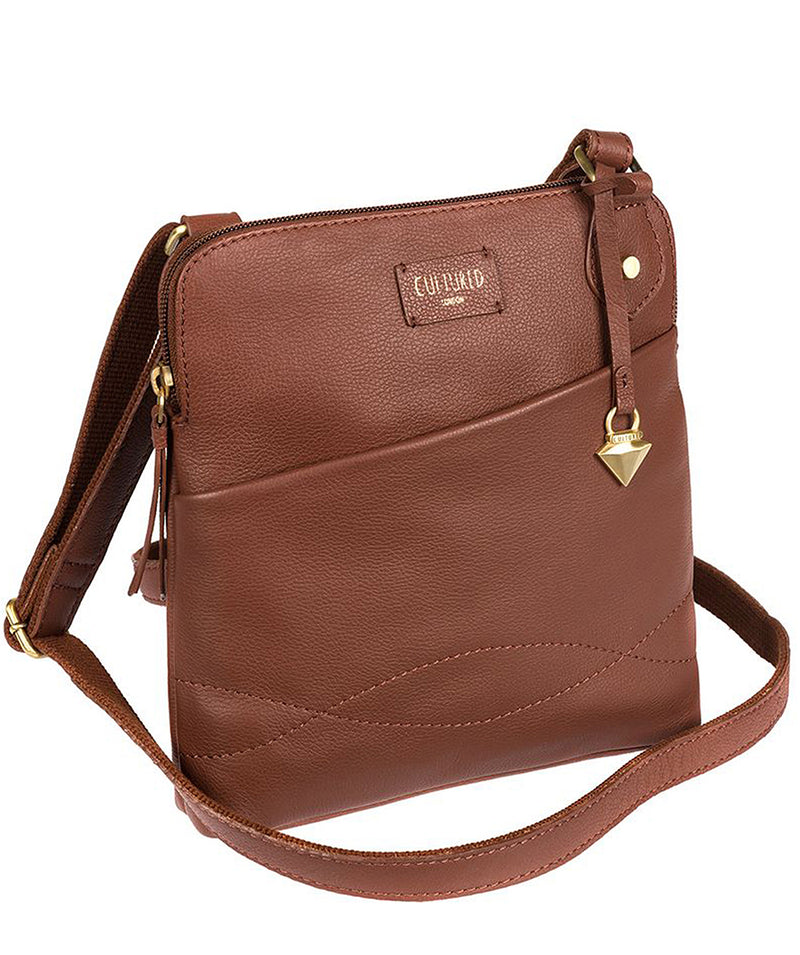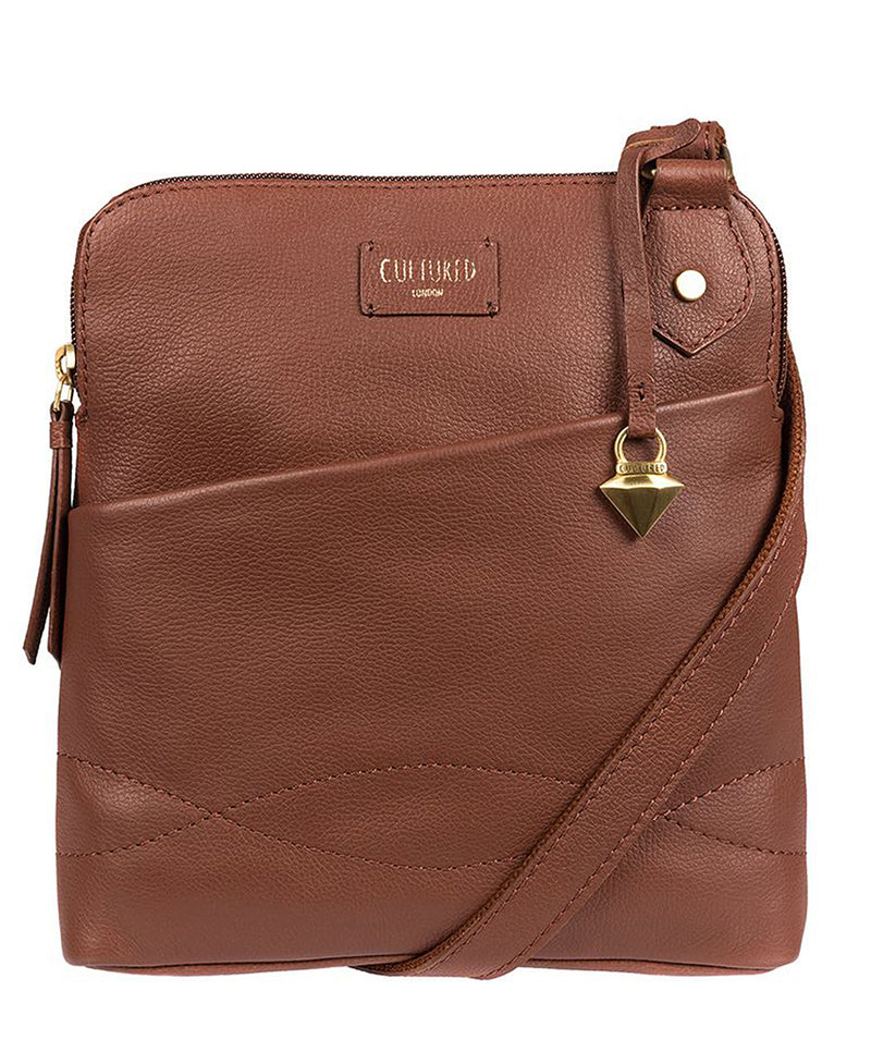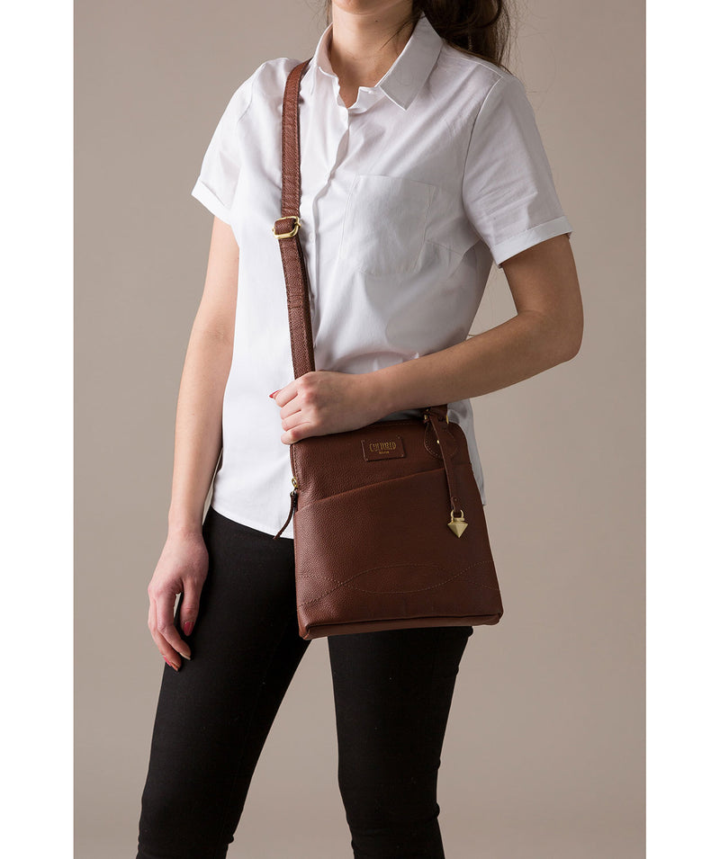 'Jayne' Sienna Brown Leather Slim Cross-Body Bag
