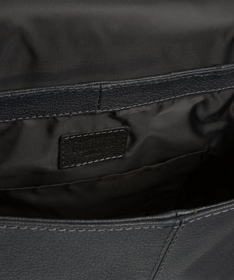 - The interior is fully lined and features a slip pouch opposite a phone slot