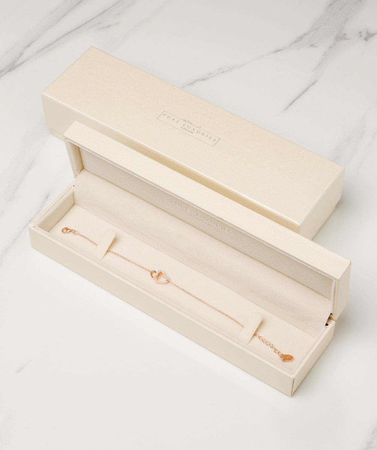 Gift Packaged 'Cecelia' 18ct Rose Gold Plated 925 Silver Heart Bracelet