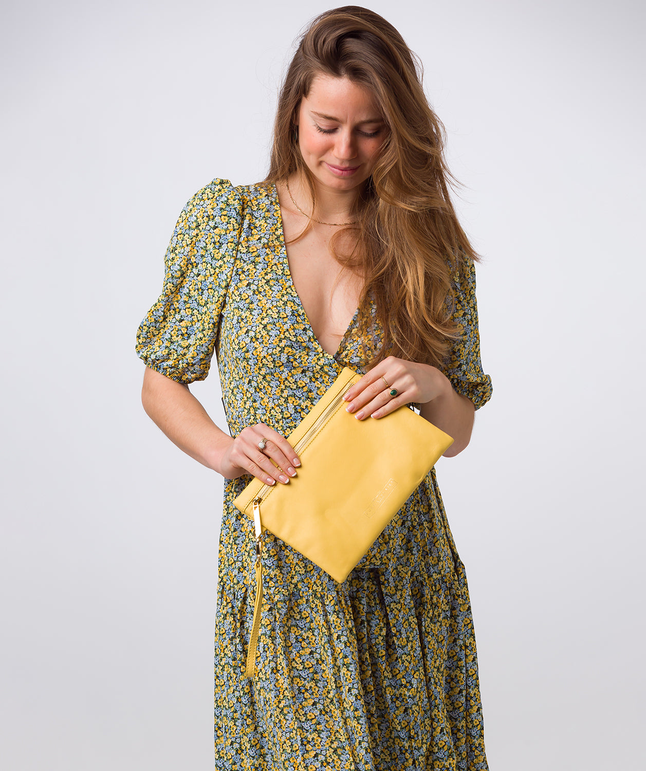 'Chalfont' Lemon Drop Leather Clutch Bag