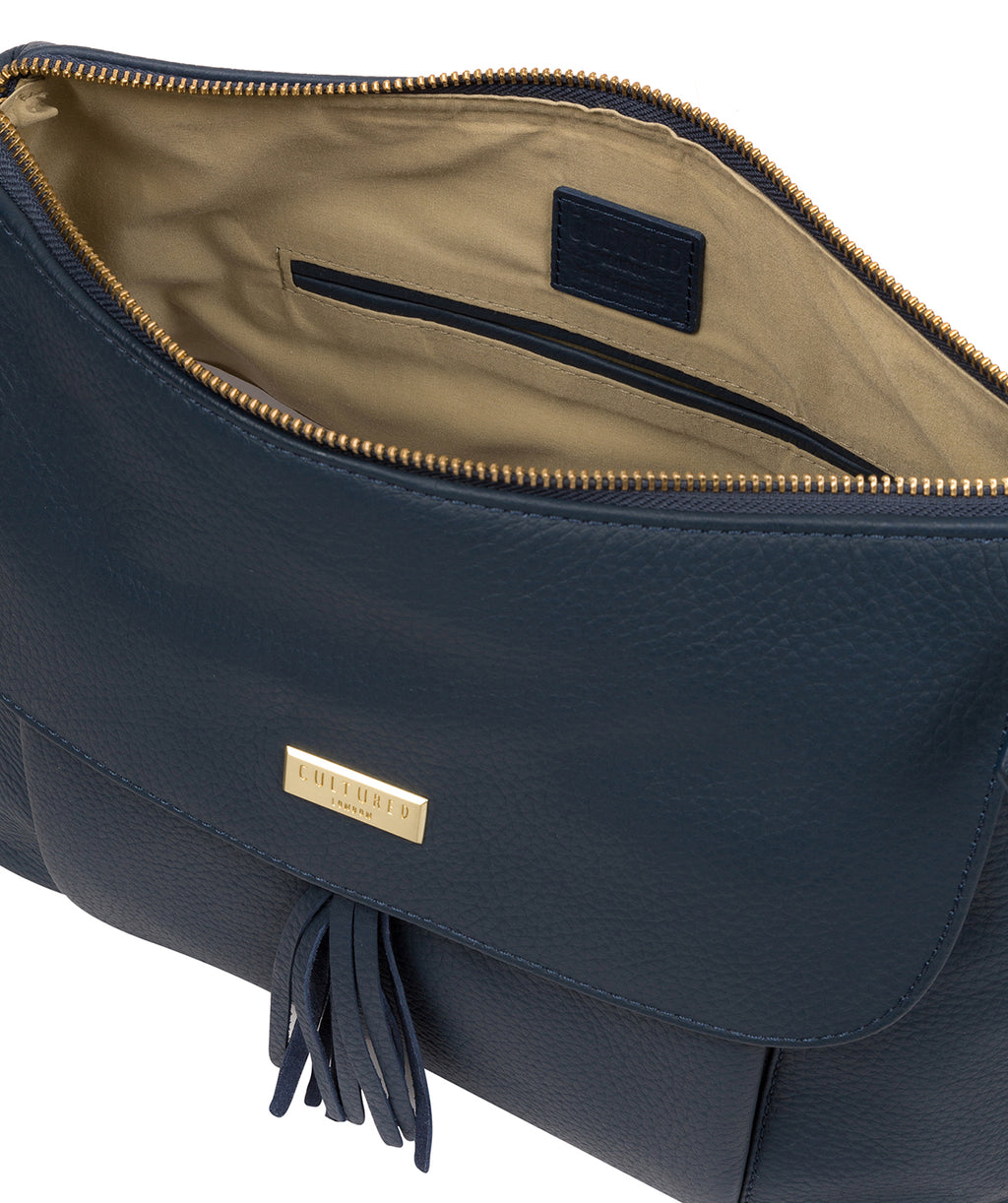 - A unique tassel adorns the press stud pocket on the exterior of the product which provides on-the-go storage