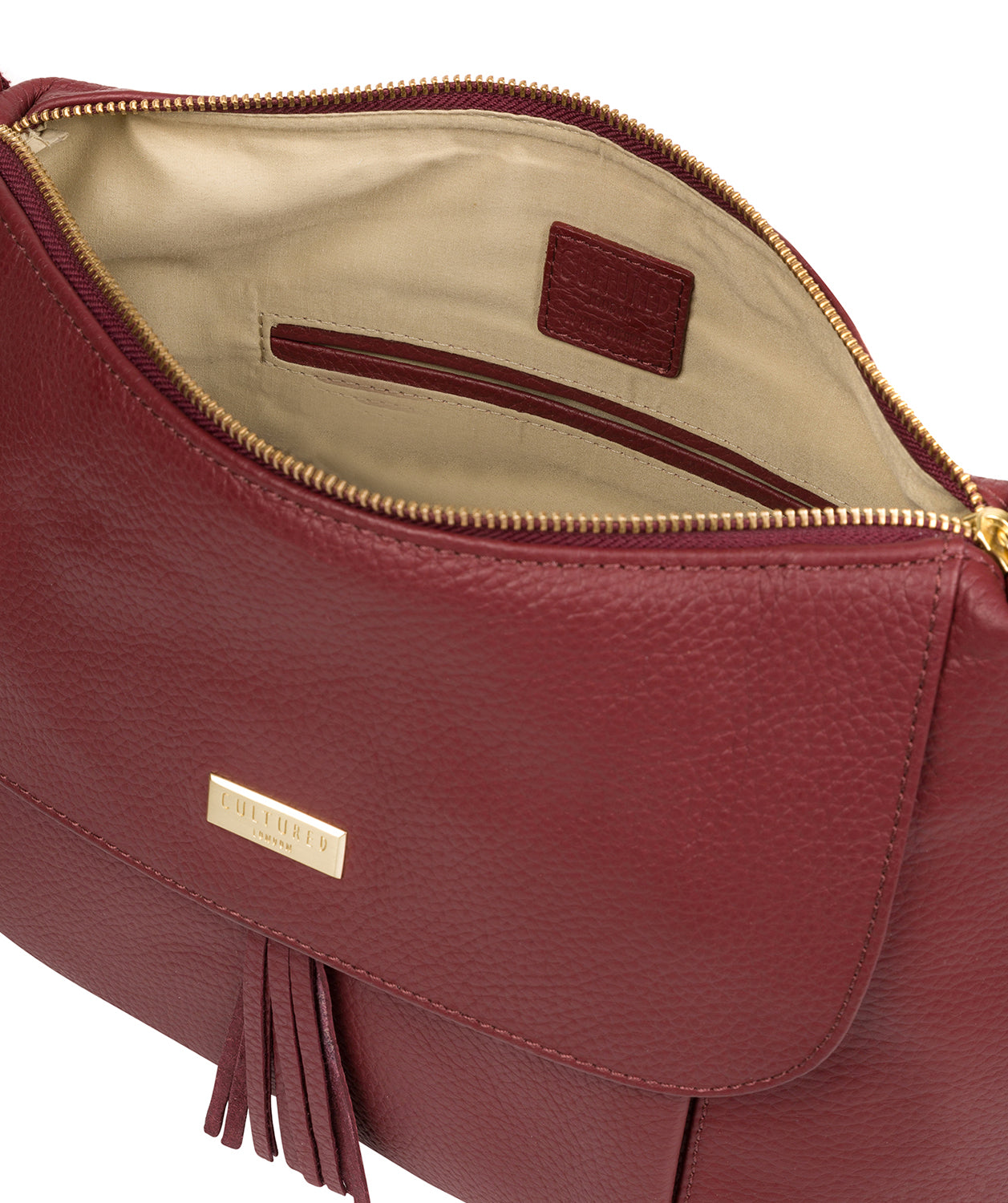 - A unique tassel adorns the press stud pocket on the exterior of the product which provides on-the-go storage