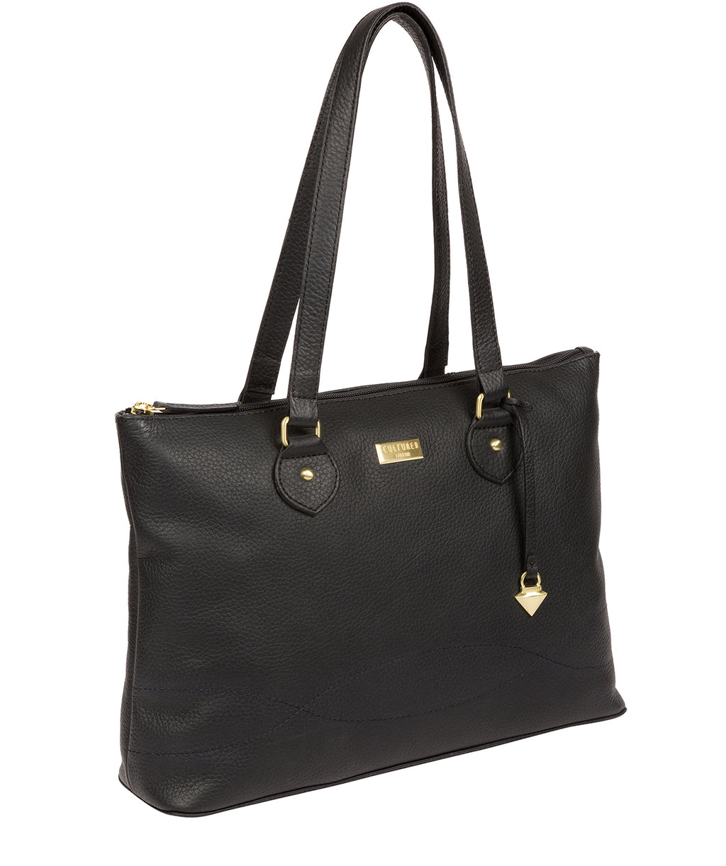 'Idelle' Black Leather Tote Bag