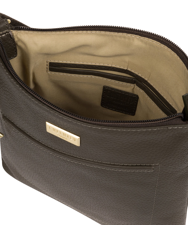 - A zip-over top secures a spacious central compartment and two interior pouches ideal for a smart phone and keys