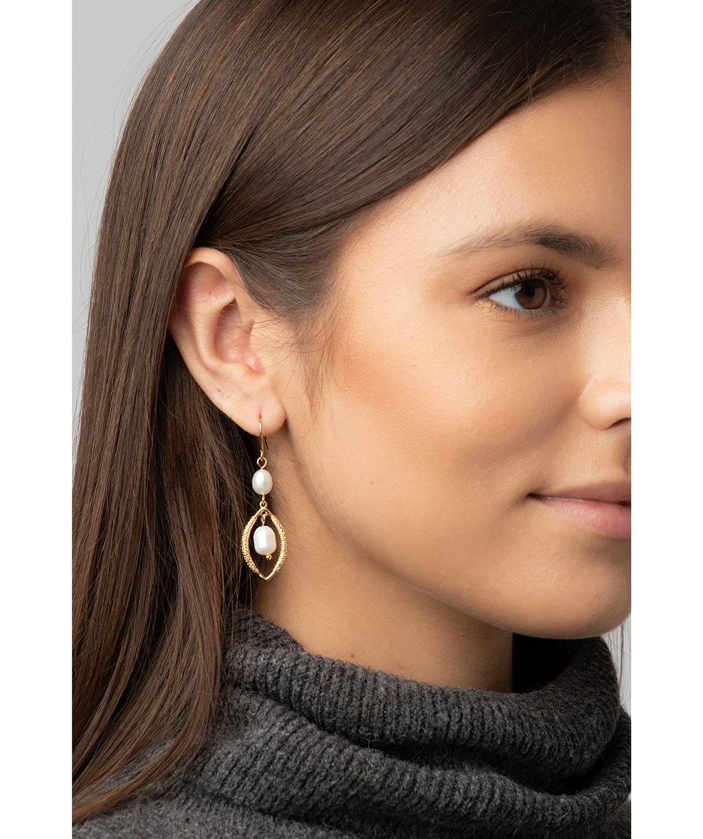 Gift Packaged 'Florence' 18ct Yellow Gold Plated Sterling Silver Freshwater Pearl Teardrop Earrings