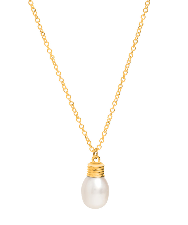 Gift Packaged 'Niamh' 18ct Yellow Gold Plated Sterling Silver Oval Freshwater Pearl Necklace