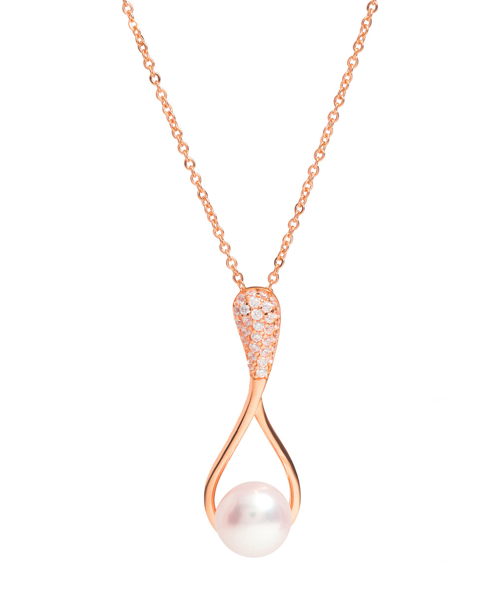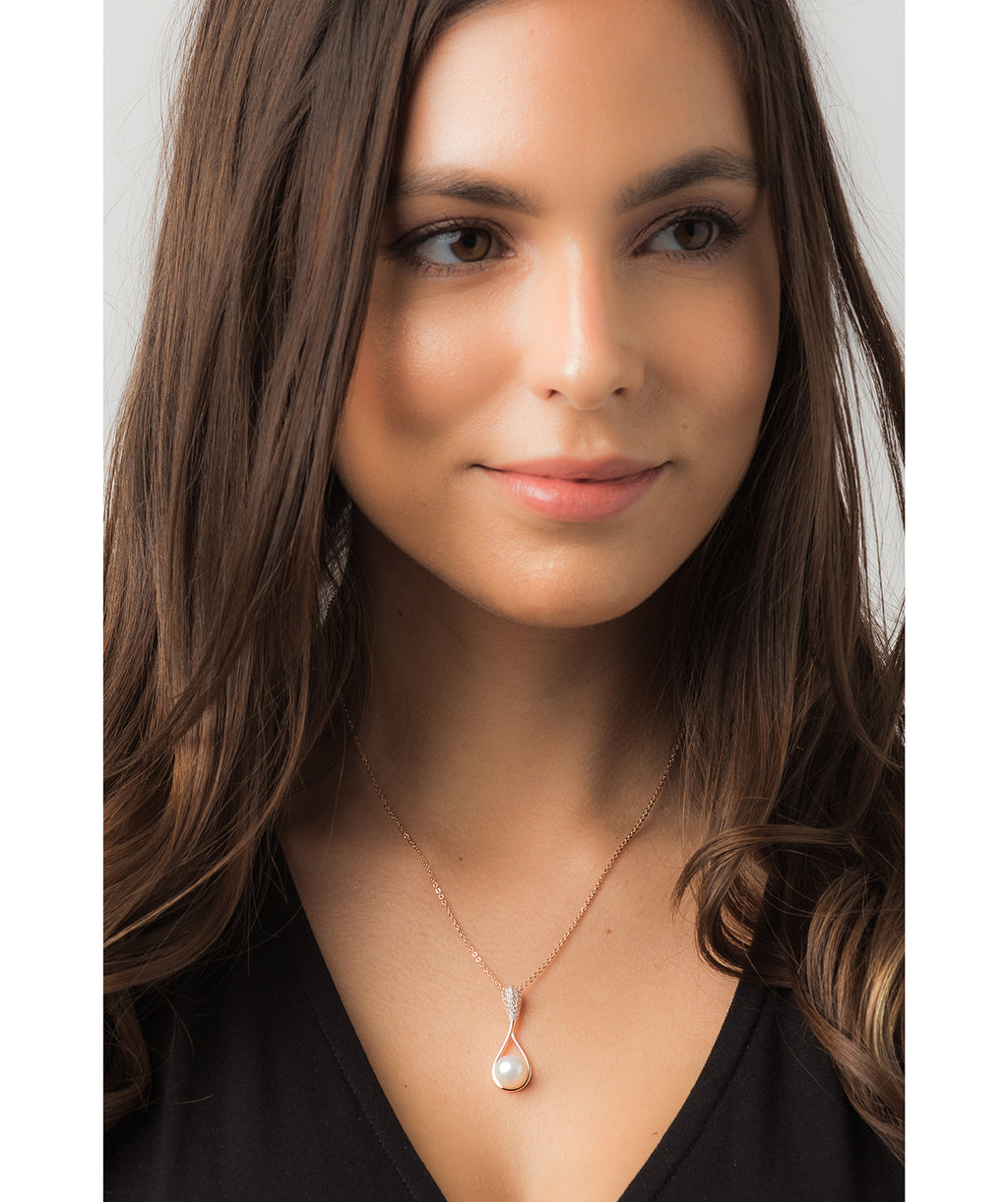Gift Packaged 'Renou' 18ct Rose Gold Plated 925 Silver & Freshwater Pearl with Cubic Zirconia Necklace