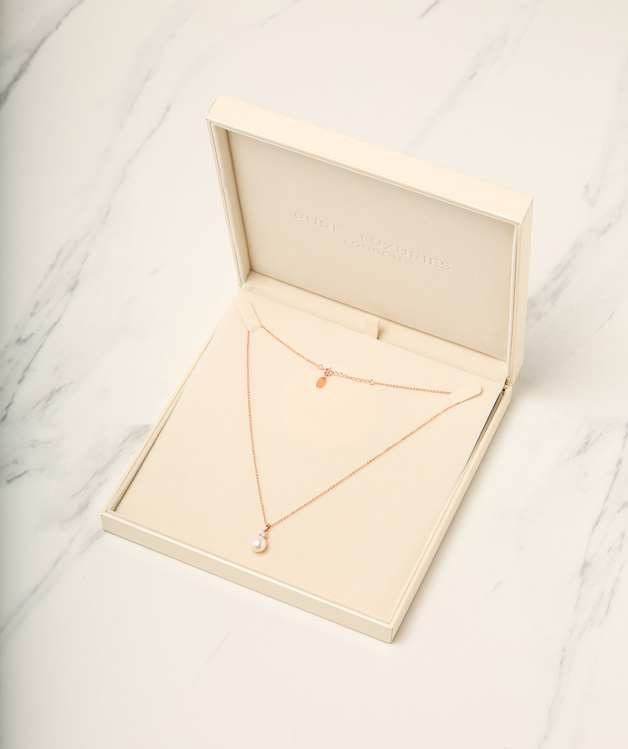 Gift Packaged 'Seville' 18ct Rose Gold Plated 925 Silver & Pearl Sparkle Necklace