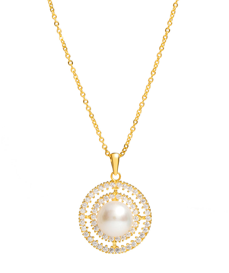 Gift Packaged 'Valverde' 18ct Yellow Gold Plated 925 Silver, Pearl & Cubic Zirconia Necklace