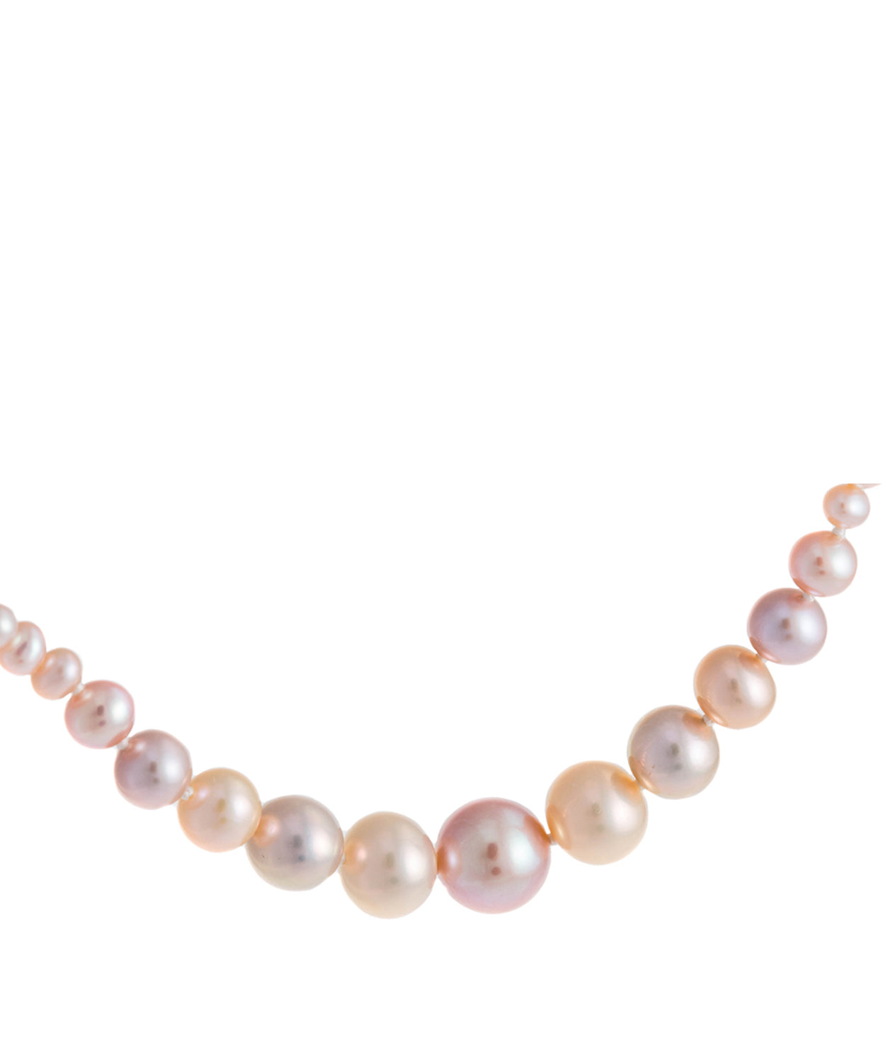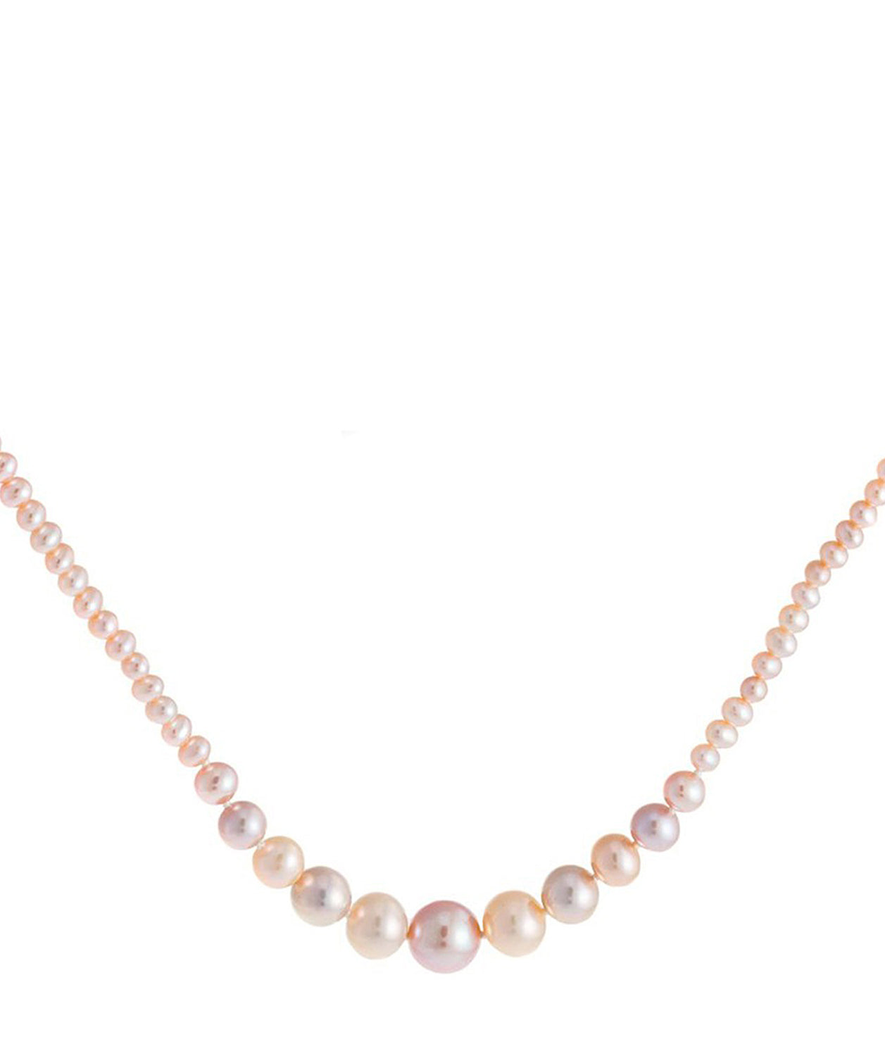 This exquisite necklace is strung in the UK from beautiful cultured river pearls, set with a graduating size effect and chosen for their soft pink hue and natural lustre. Finished with a 9-carat white gold fish hook fastener, the necklace comes presented in bespoke Pure Luxuries gift packaging. Made from cultured river pearls in a graduating size White gold fish hook push-fastening 44cm length Presented in bespoke Pure Luxuries packaging