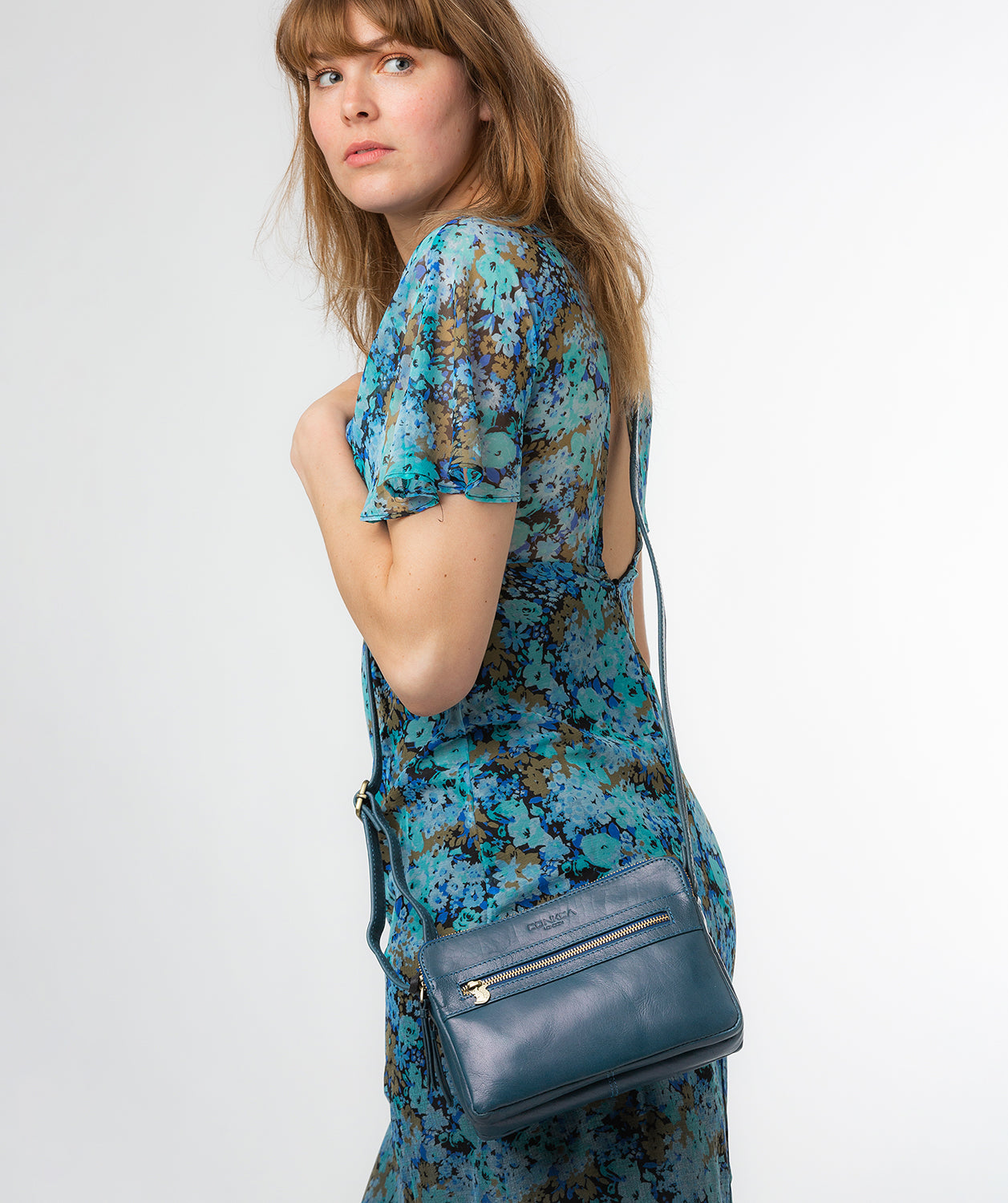 'Drew' Snorkel Blue Leather Cross Body Bag