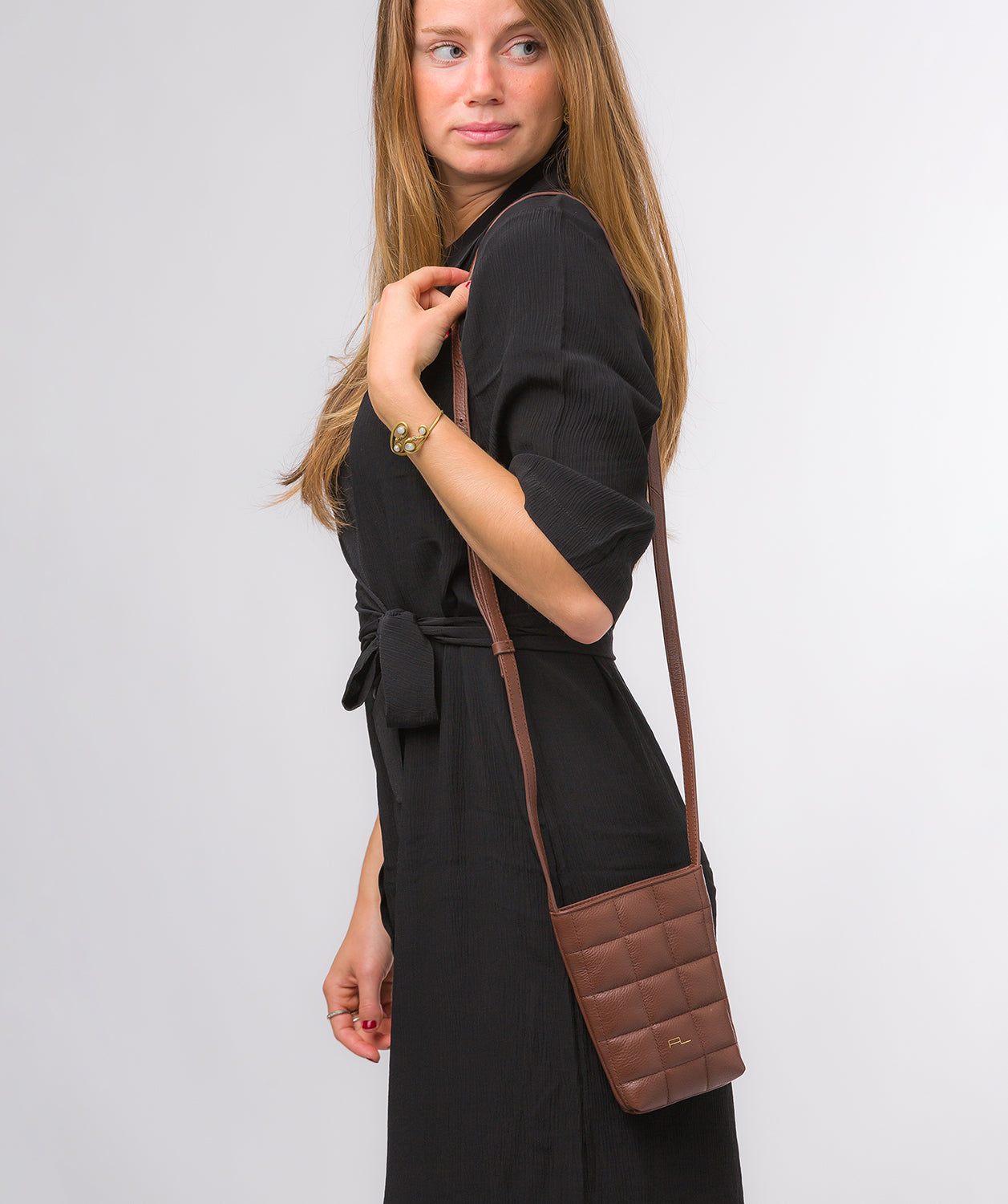 'Elouise' Dark Tan Nappa Leather Cross Body Phone Bag
