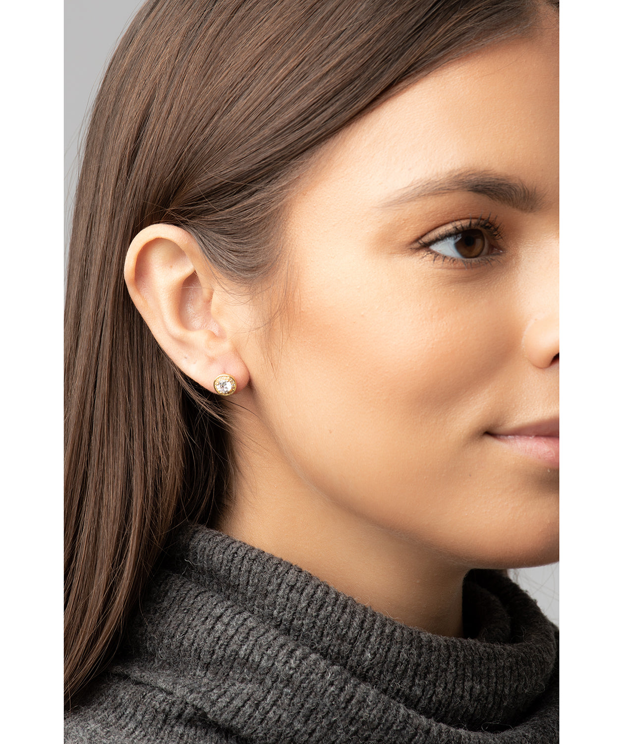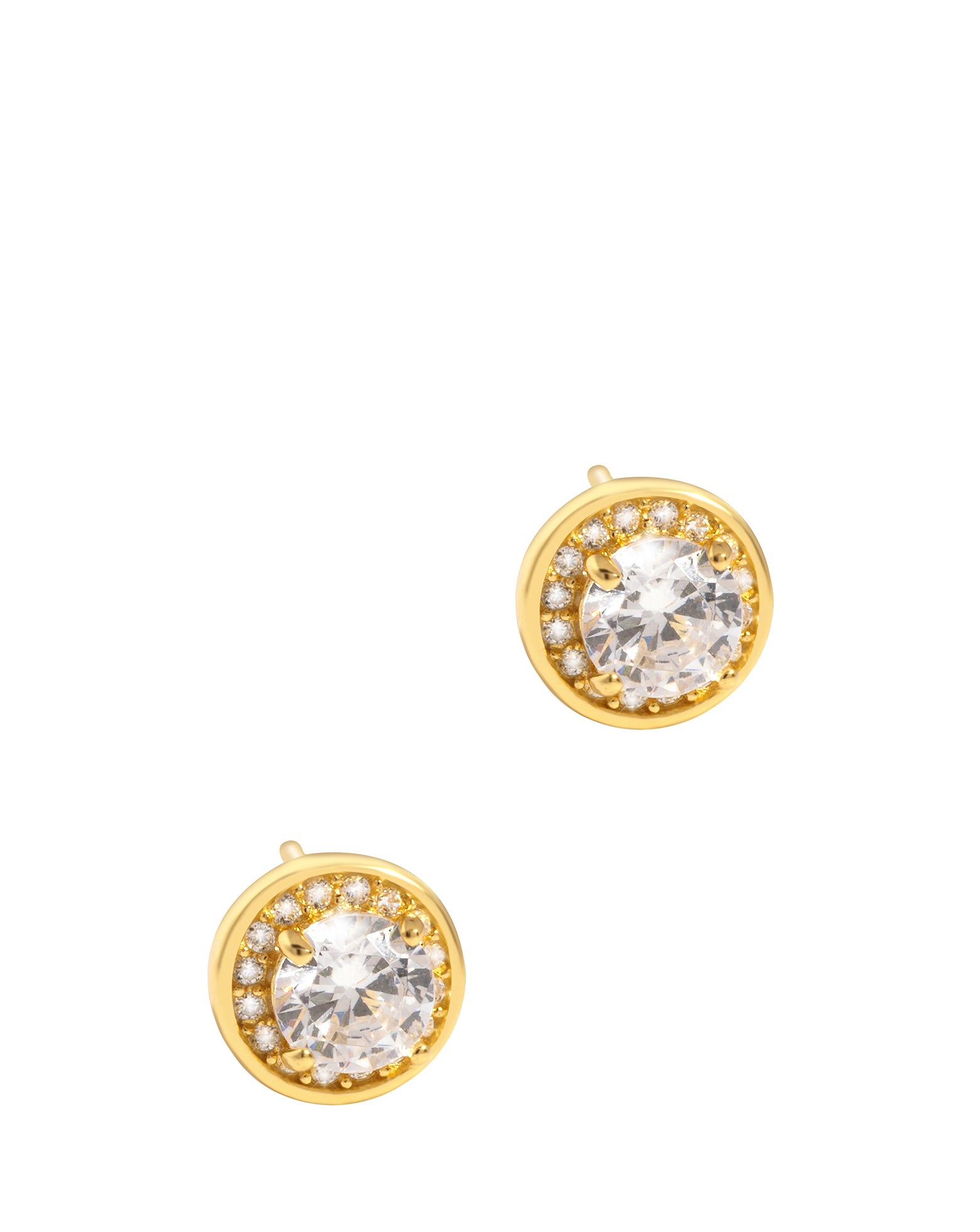 Gift Packaged 'Eos' Yellow Gold Plated Sterling Silver with Round Halo Cubic Zirconia Stud Earrings