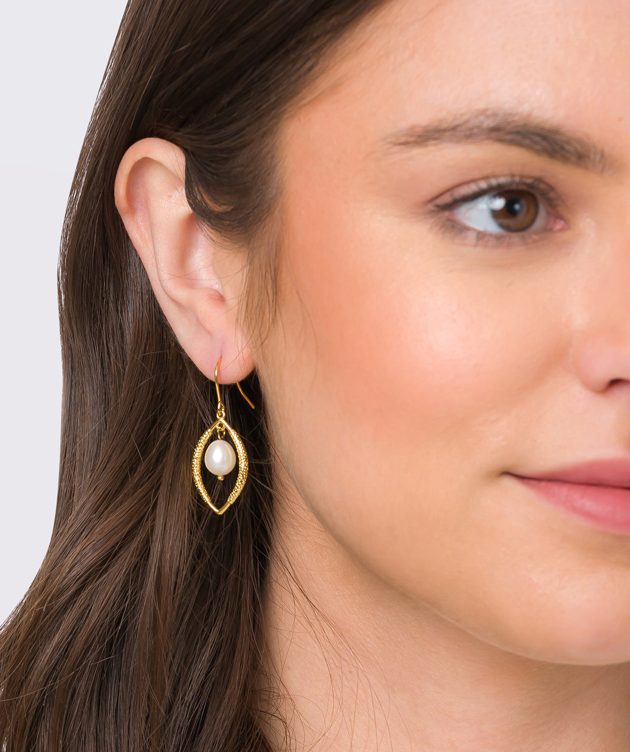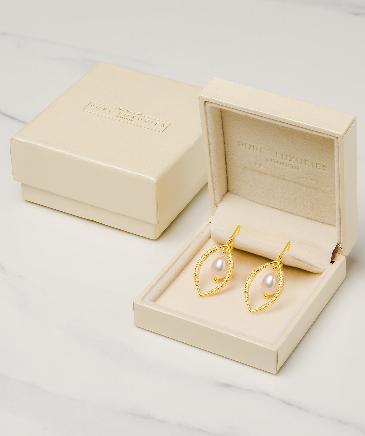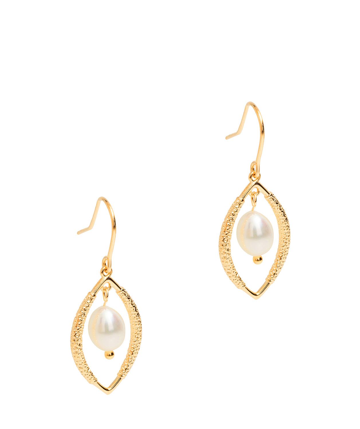 Gift Packaged 'Dorothy' 18ct Yellow Gold Plated Sterling Silver Teardrop Framed Freshwater Pearl Earrings