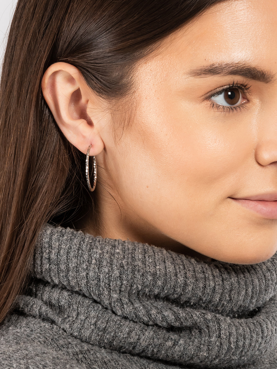 Gift Packaged 'Femke' Rhodium Plated 925 Silver Textured Hoop Earrings
