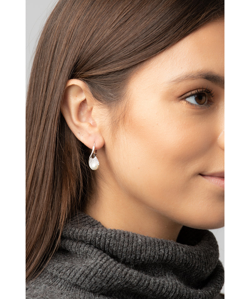 Gift Packaged 'Fernada' Rhodium 925 Silver Pearl Drop Earrings